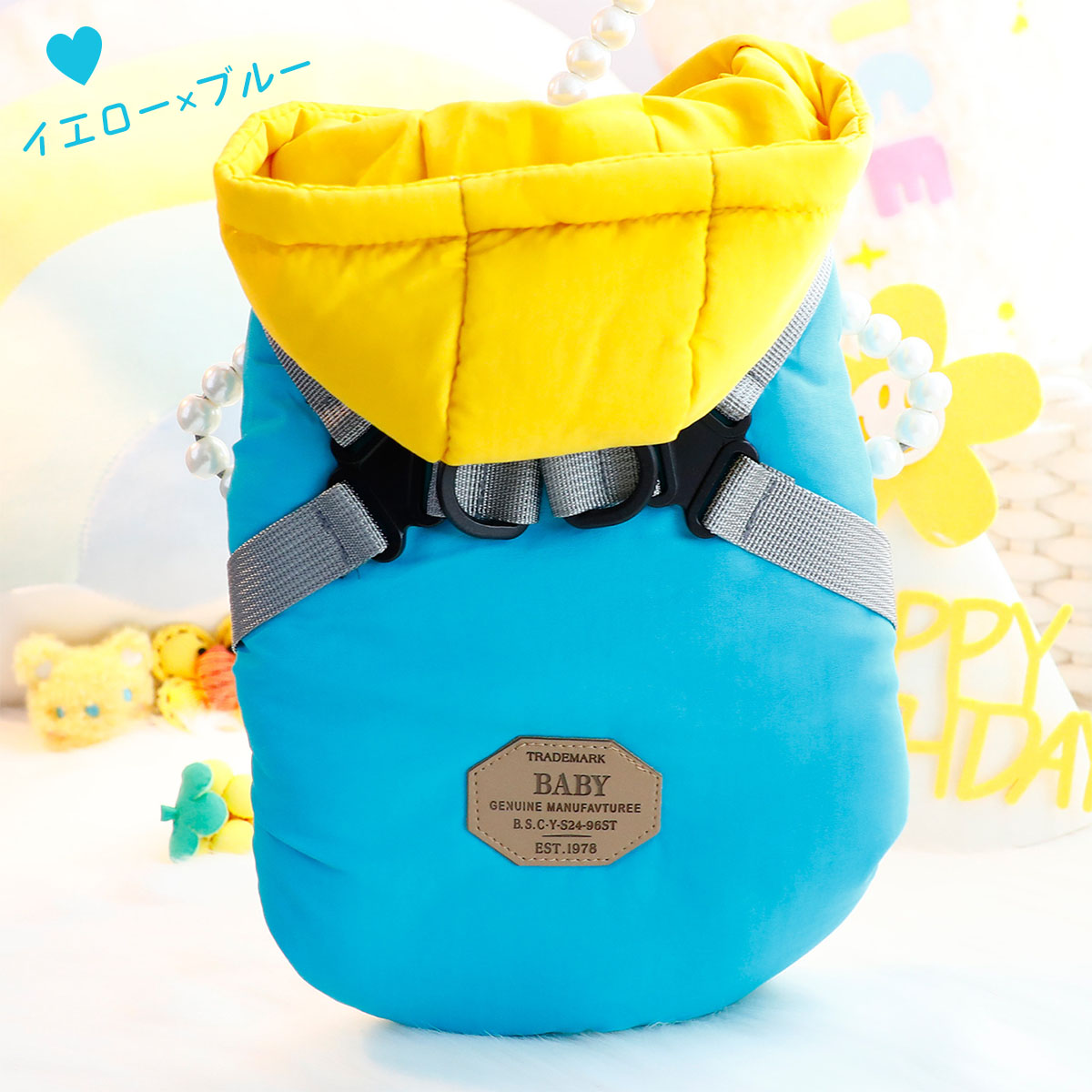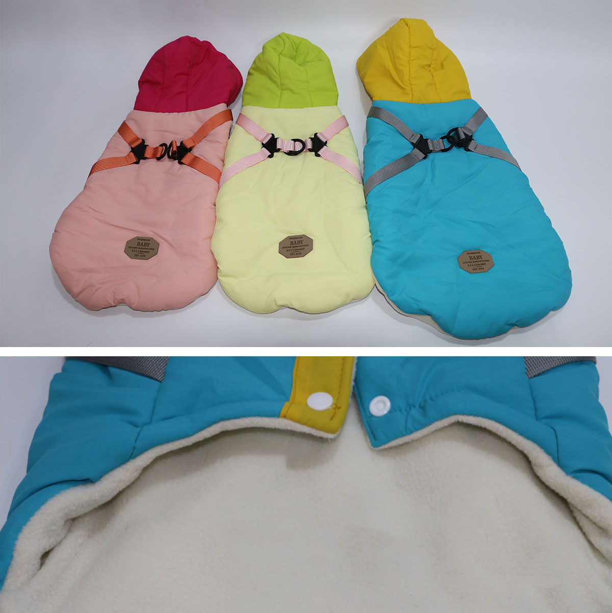 犬服 冬 ハーネス一体型 コート 小型 犬用品 ドッグウェア ジャケット 豊富 ローズ×ピンク イエロー×ブルー グリーン×イエロー S M L XL XXL