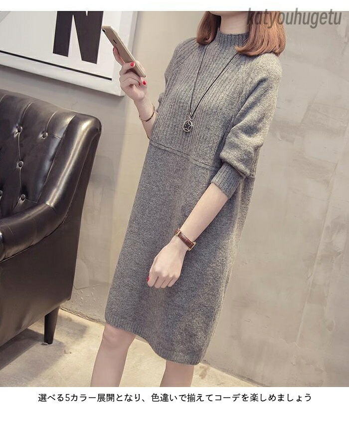 ニットセーター レディース ロングセー トップス ニット セーター セーター 豊富 ダークグレー ライトベージュ ブラック ライトグレー ピンク M L XL 2XL