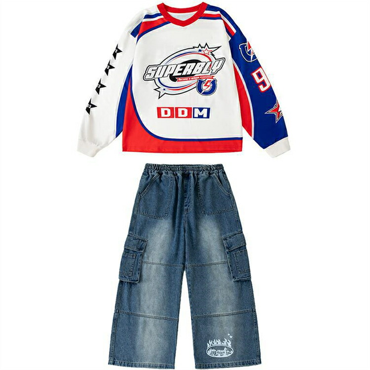デニムパンツ セットアップ 長袖Tシャ キッズ スーツ カジュアルセットアップ カジュアルパンツセット 新登場! 110cm 120cm 130cm 140cm 150cm 160cm 170cm 180cm トップス+ズボン トップス単品 ズボン単品