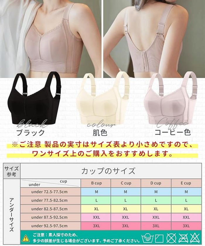 胸を小さく見せるブラ 小さく見せるブラ インナー 下着 ナイトウエア 通販 ブラック コーヒー 肌色 M L XL 2XL 3XL