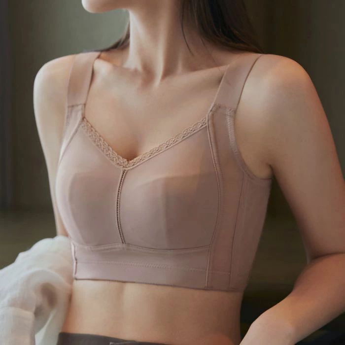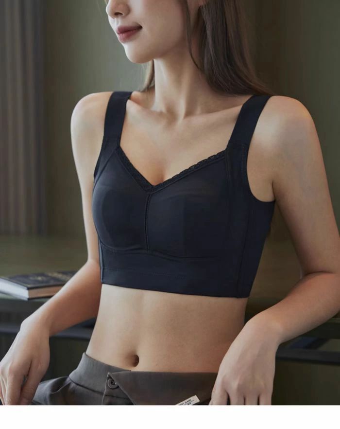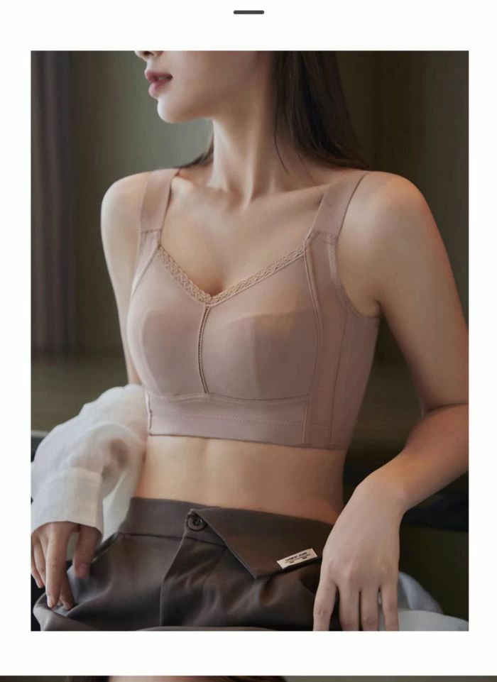 【シルク肌触り・超通気性ブラ】胸を小さく見せるブラの薄型パッドで通気性の良さは他の製品にはない体験。一般的なブラジャー滴型パッドに比べ、超薄いパッドは蒸れ熱いを防ぐので、暑い夏に使用しても息苦感じない。両サイドにメッシュ素材を使用し、今までにない通気性を実現、抗菌防臭効果も優秀!小さく見せるブラ衛生面も心配なく、冷感表生地速やかな吸湿放熱性は汗ジミによる肌のかゆみやチクチク感も軽減され小さく見せるブラです。