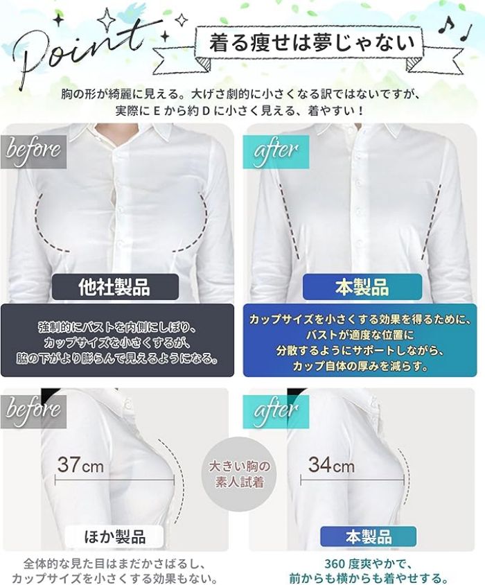 胸を小さく見せるブラ 小さく見せるブラ ・揺れ軽減・見痩せ・ホールド力 小さく見えるブラ 脇 ブラジャー
