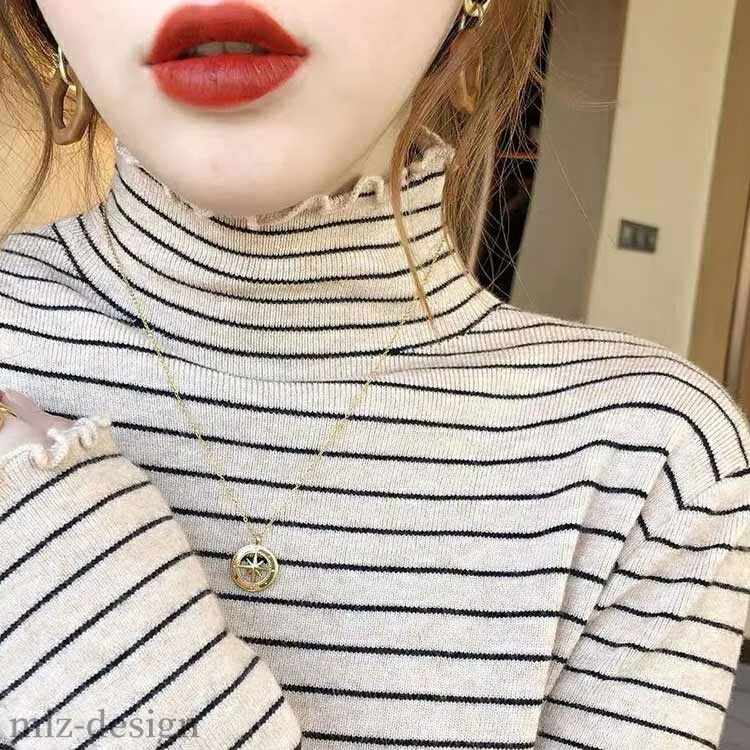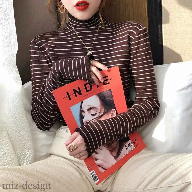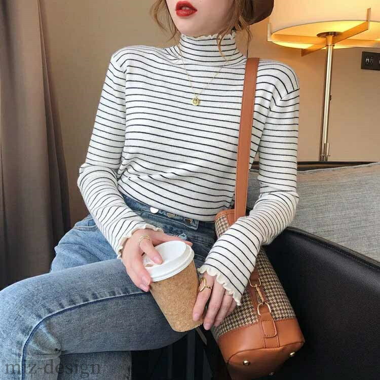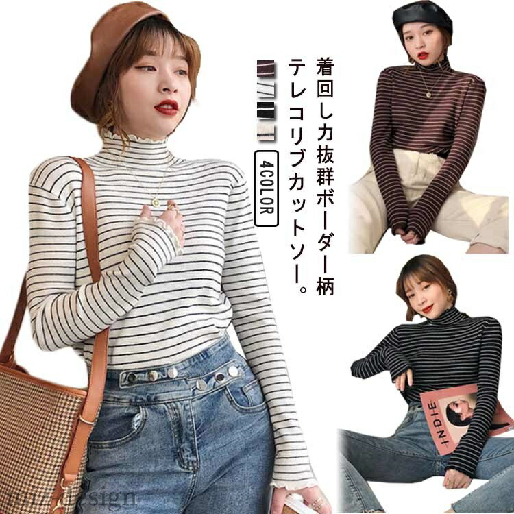 リブ カットソー ボーダー柄 レディー トップス Tシャツ カットソー 特集 ベージュ ブラック ホワイト ブラウン S M L XL 2XL