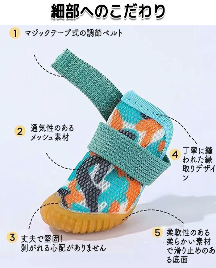 ドッグシューズ 犬シューズ 犬靴 ドック靴 ドッグ靴 靴 柔らかい 柔軟性 滑り止め 履きやすい 犬 散歩 暑さ対策 寒さ対策 犬用ブーツ ペット用品 汚れ防止 怪我防止 滑り止め加工 メッシュ 肉球