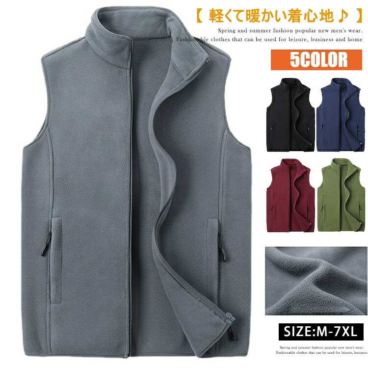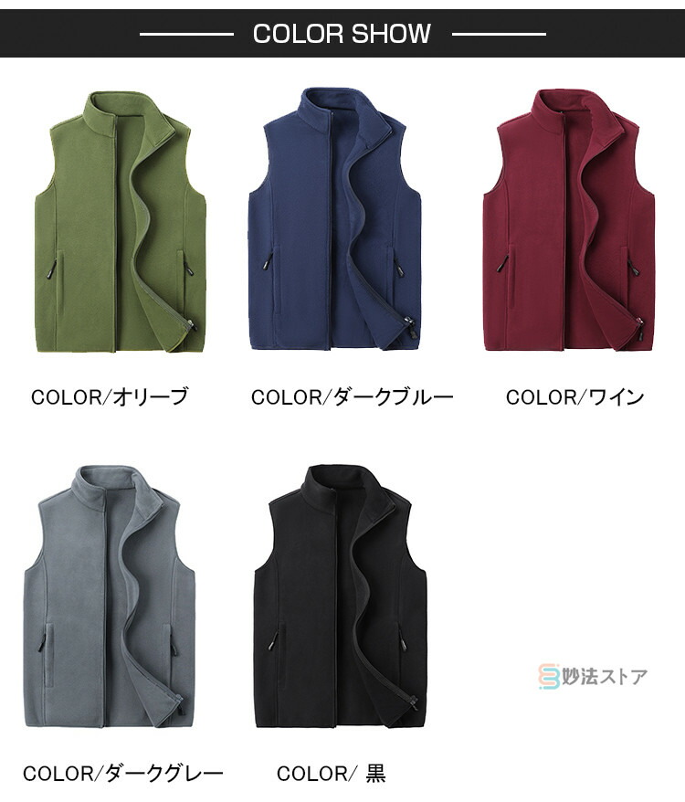 フリース ベスト 起毛 暖かい スタン トップス ベスト ジレ 豊富な品揃え M L XL 2XL 3XL 4XL 5XL 6XL 7XL オリーブ 黒 ダークブルー ワイン ダークグレー