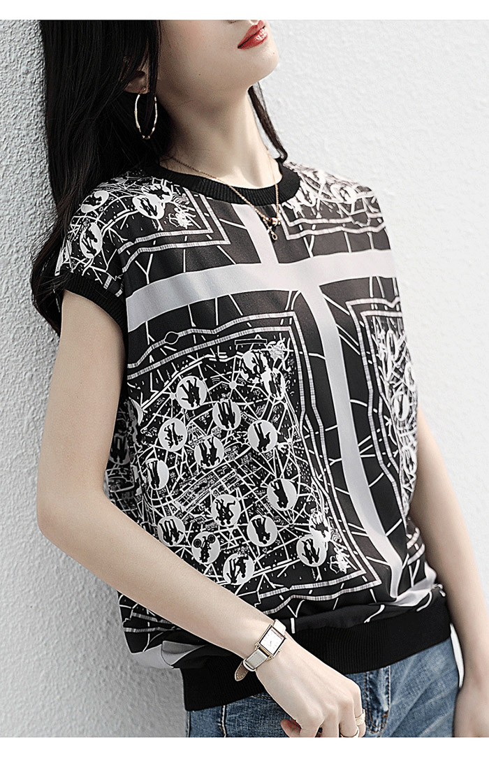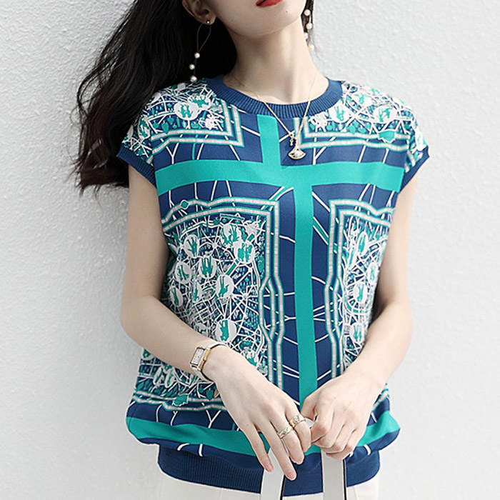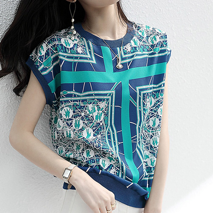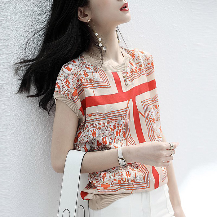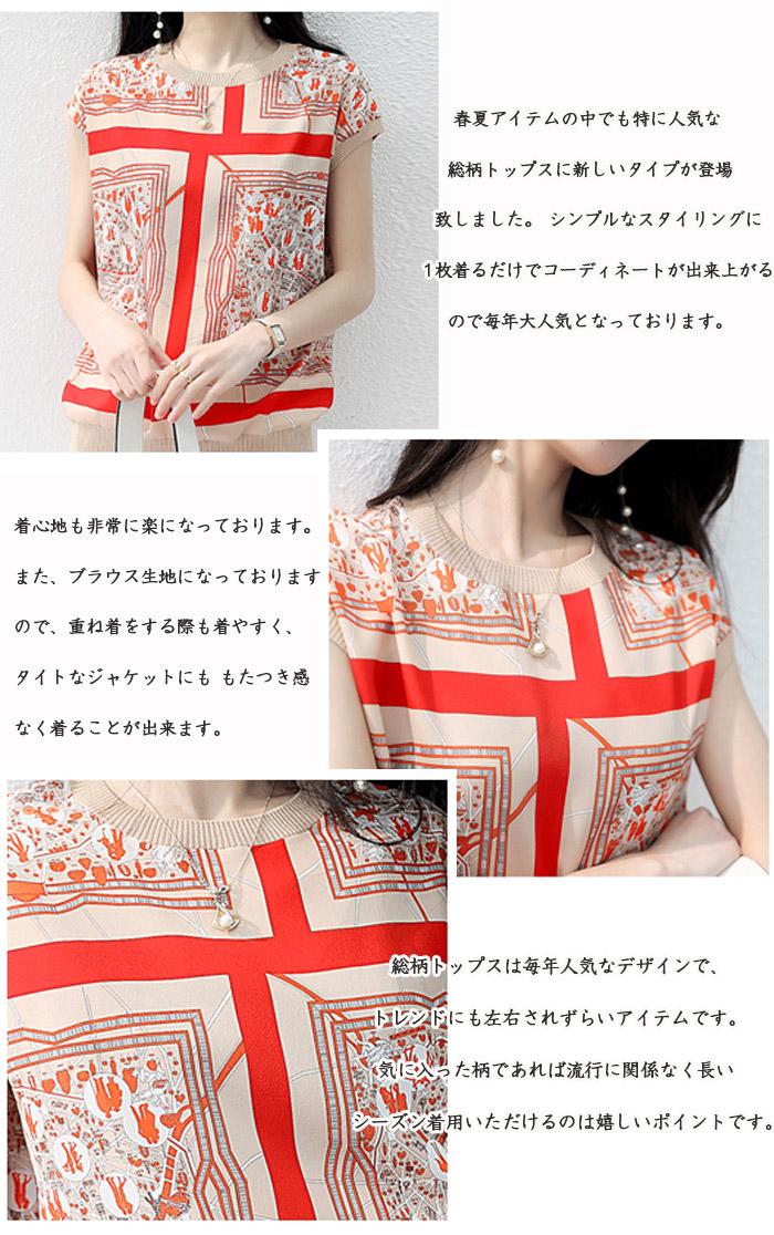 ニットTシャツ レディース 総柄 グラ トップス Tシャツ カットソー 特集 ブラック オレンジ ブルー M L XL 2XL 3XL