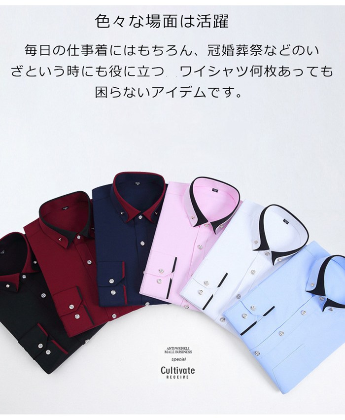 形態安定 ワイシャツ カッターシャツ トップス ワイシャツ 超目玉商品 ホワイト ライトブルー ピンク ネイビー ブラック ワイン ダークグリーン パープル ダークブルー グリーン 40/L(日本S相当) 41/XL日本M相当) 42/2XL日本L相当) 43/3XL日本XL相当) 44/4XL日本2XL相当)