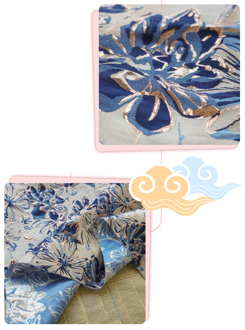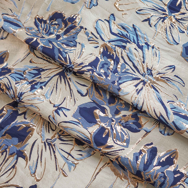145cm幅 90cm単位 生地 布 布地 きじ ジャカード生地 色織り 花柄 ブルー エンボス生地