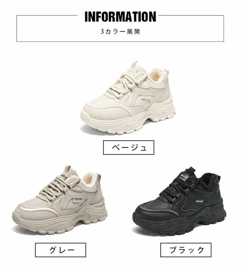 レディース スニーカー 冬用 厚底 あ 靴 通販 ベージュ グレー ブラック 35(内寸22.5cm) 36(内寸23cm) 37(内寸23.5cm) 38(内寸24cm) 39(内寸24.5cm)\t 40(内寸25cm)