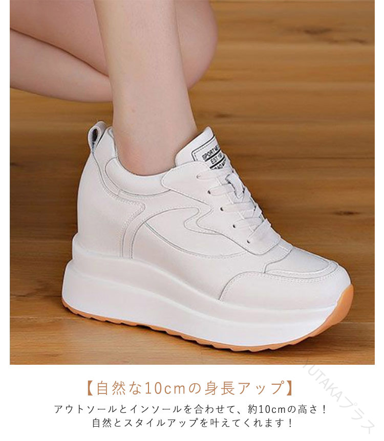 靴 ヒール 10cm スニーカー 厚底 靴 特集 ブラック ホワイト 34(22cm) 35(22.5cm) 36(23cm) 37(23.5cm) 38(24cm) 39(24.5cm)
