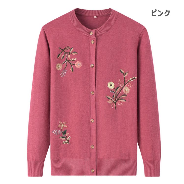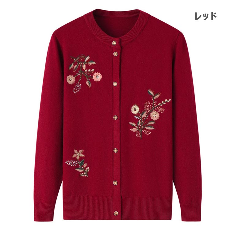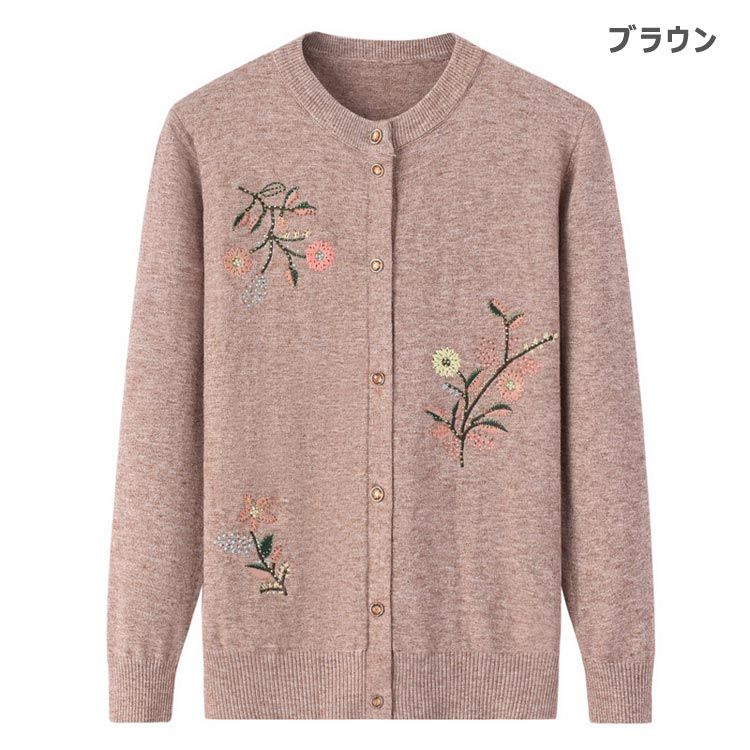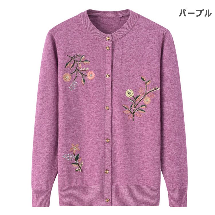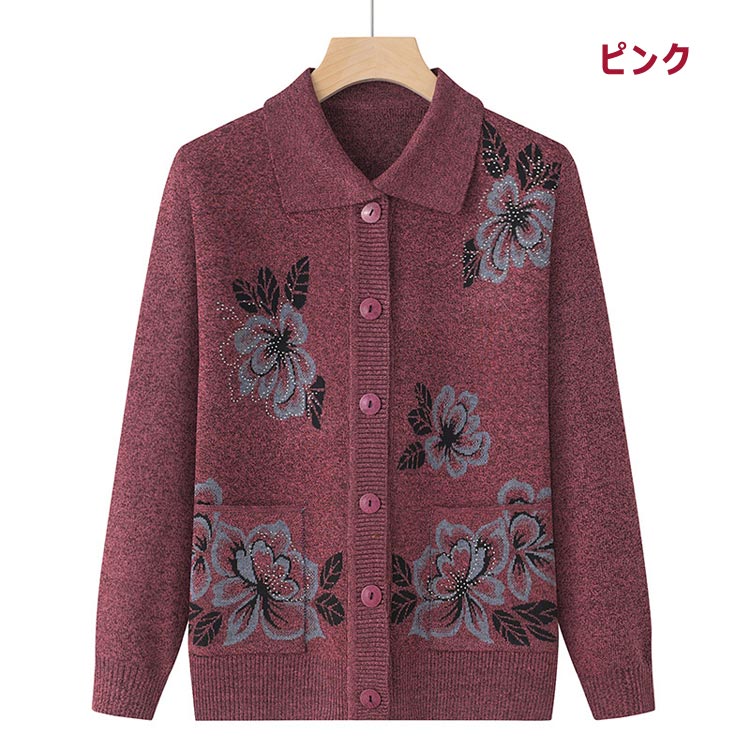 ニットカーディガン 花柄 レディース レディースファッション 新作 ブラウン ピンク レッド パープル グリーン XL 2XL 3XL 4XL