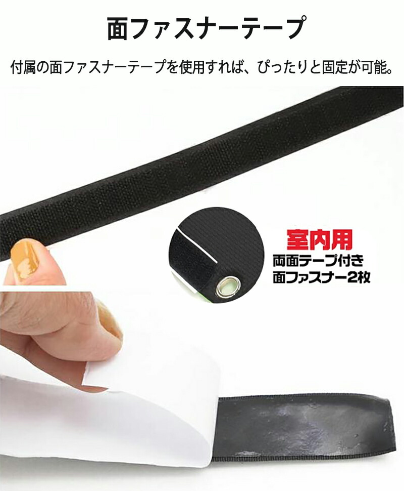 屋外用の固定用ペグと、室内用の両面テープ付き面ファスナー付き!自宅のリビングや裏庭でマットを固定して、快適に練習できます。