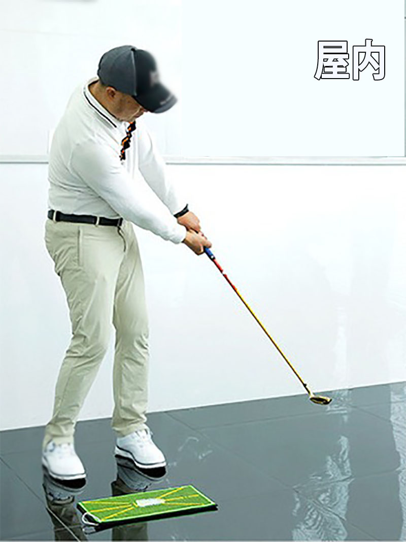 スイング後にクラブヘッドの軌道が残るゴルフ練習マット。スイング軌道を視覚的に確認しながら効果的な練習ができます。