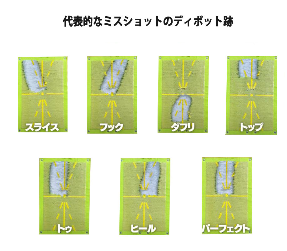 ボール位置、ティーポイント、方向などのガイドが付いているので、距離感や入射角、インパクトの強さも調整がしやすくなっています。