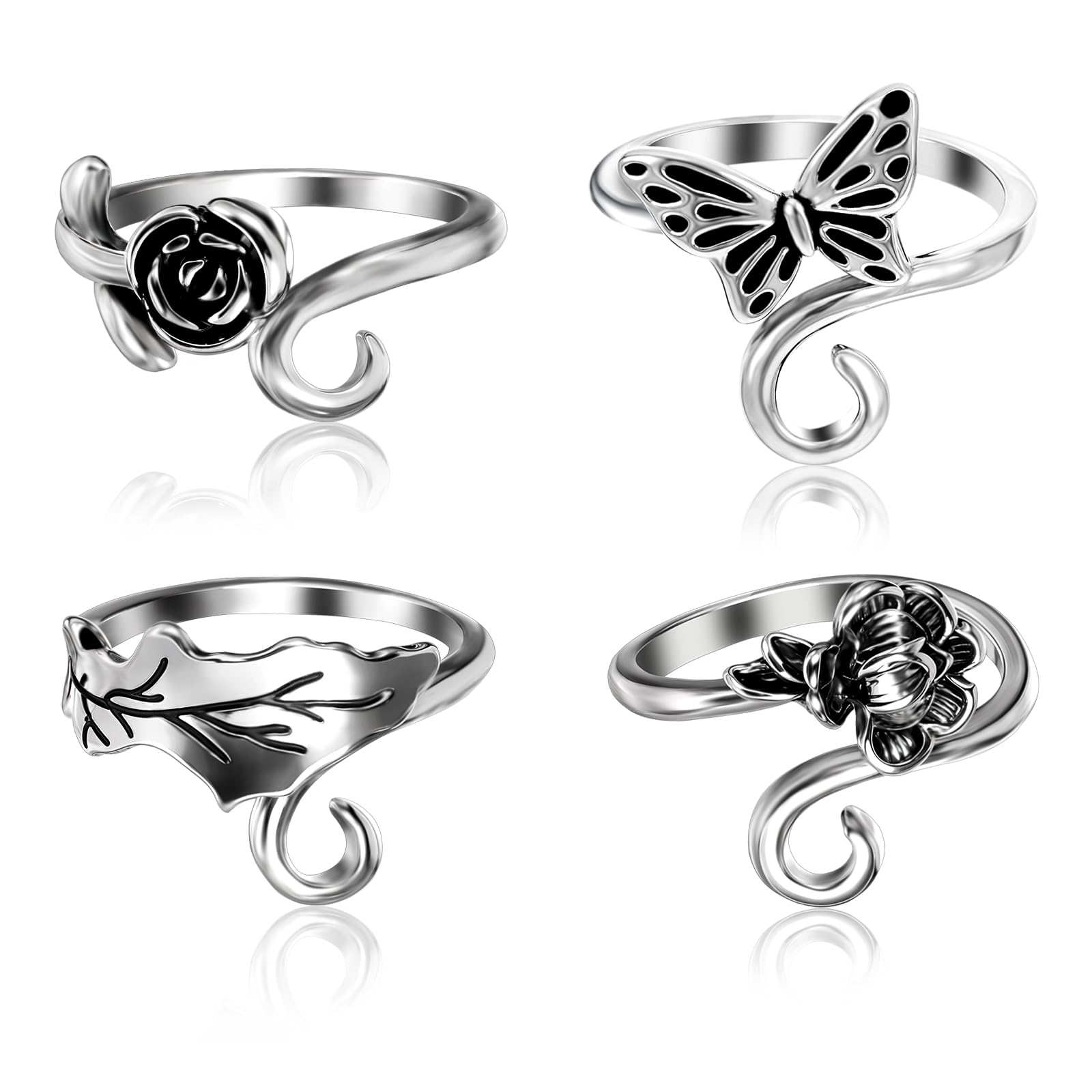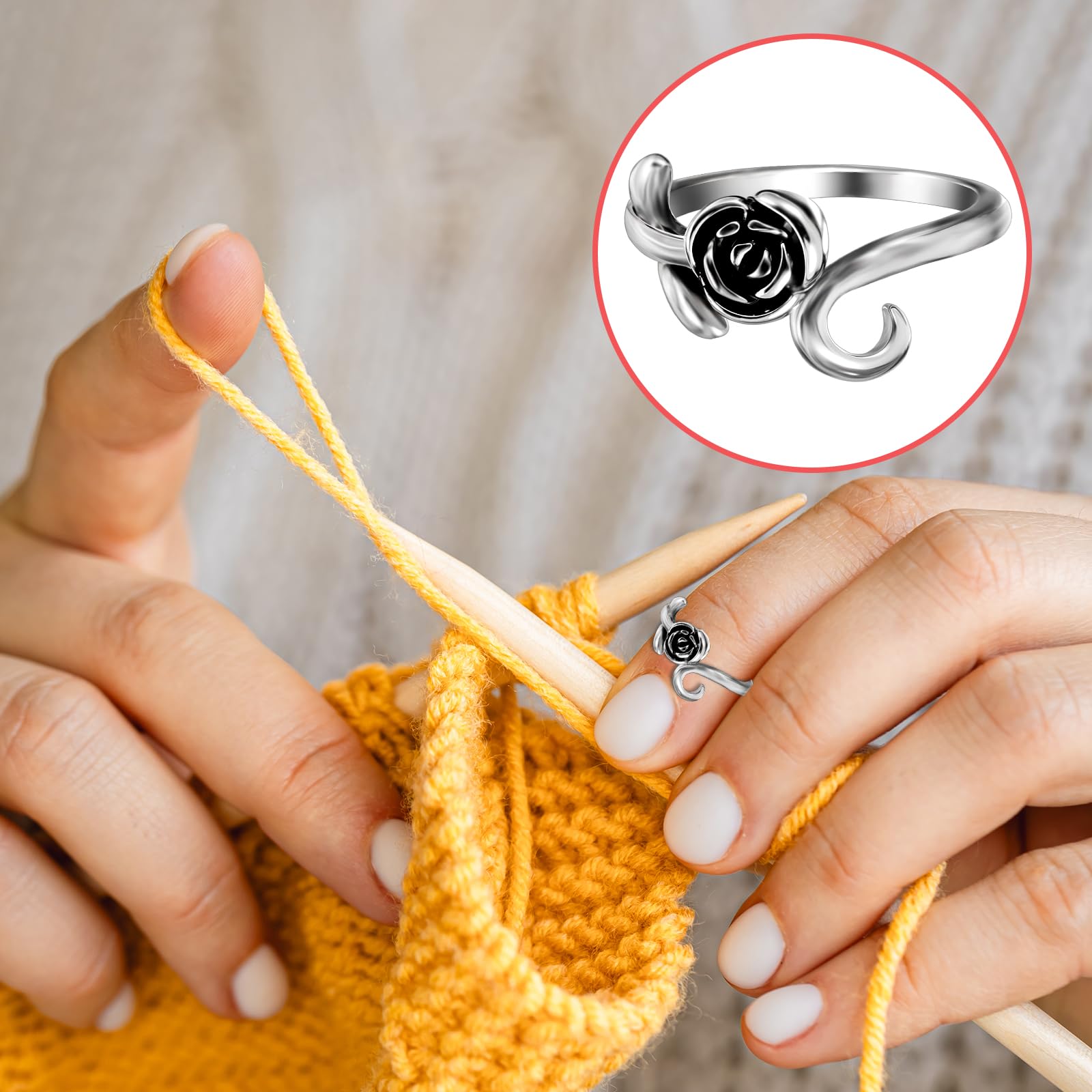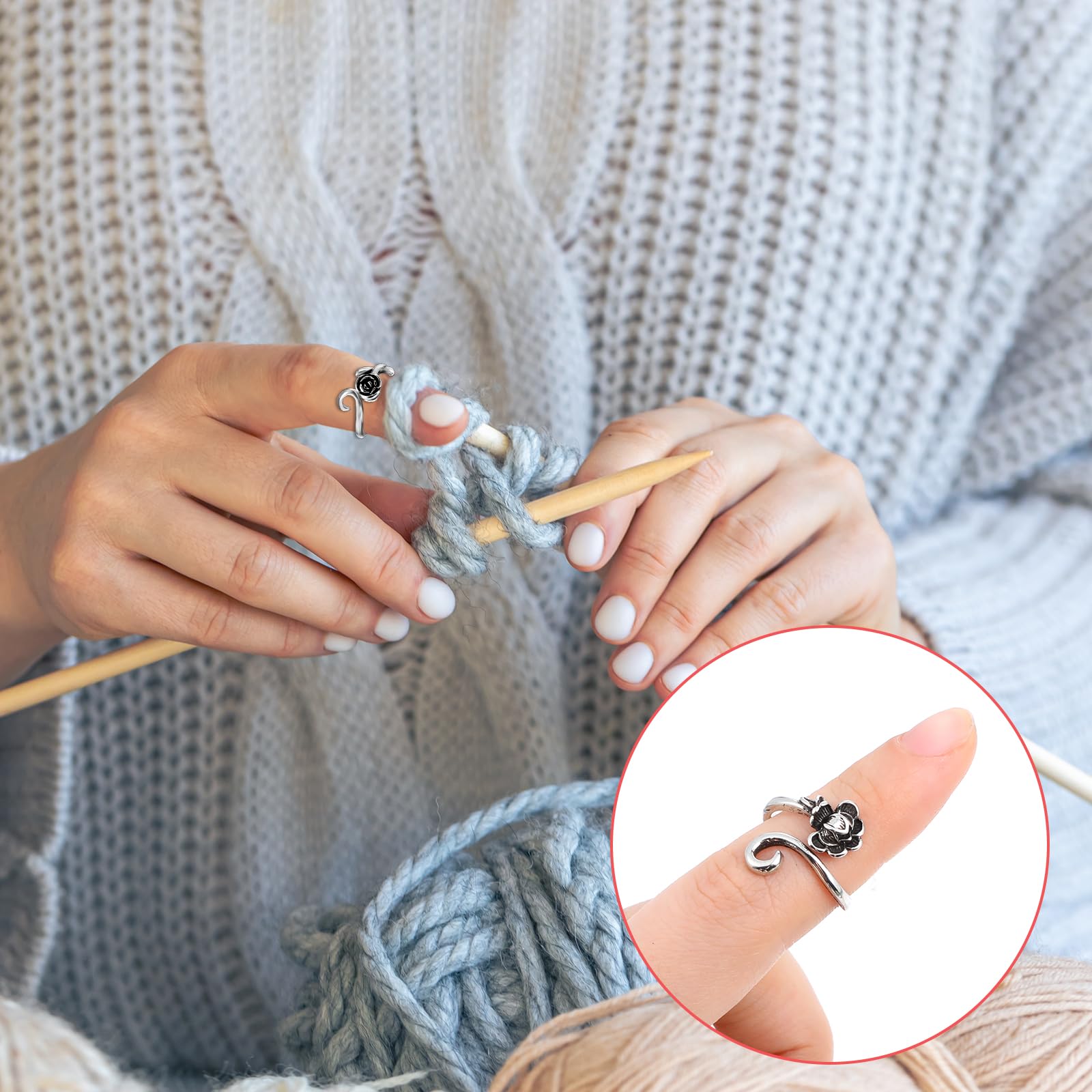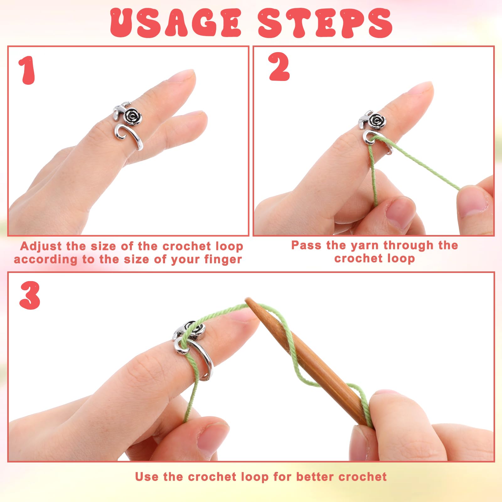 かぎ針編みリング、0.79インチ調節可能な指かぎ針編みフック、かぎ針編み用4スタイル糸テンションリング、かぎ針編み指糸ホルダー、女性用編み物かぎ針編みアクセサリー 4個