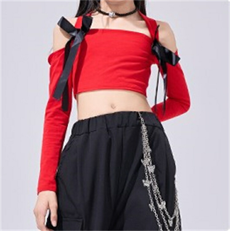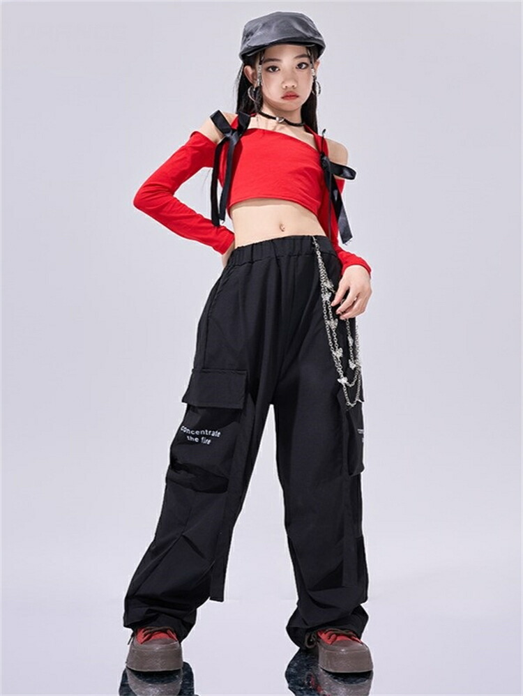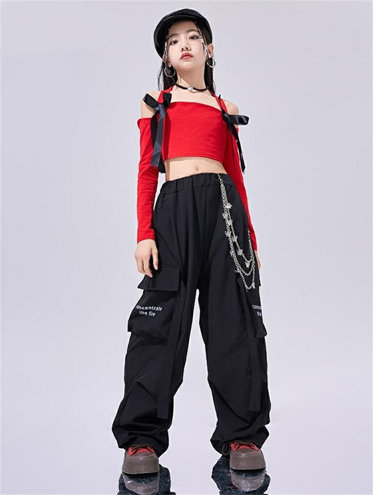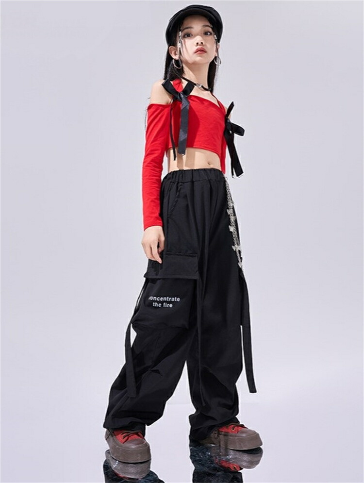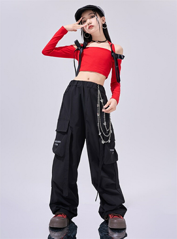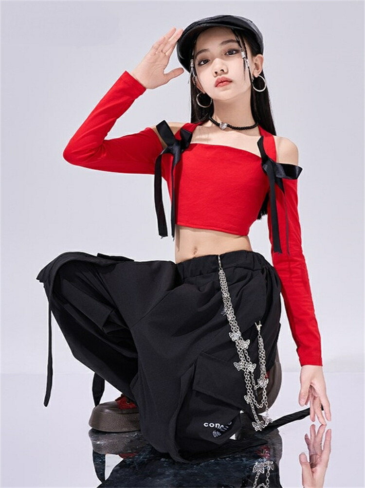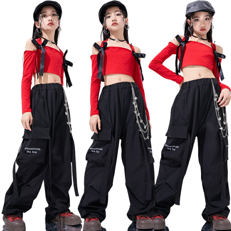 セットアップ 赤 黒 リボン へそ出し キッズ スーツ カジュアルセットアップ カジュアルパンツセット 新登場! 110cm 120cm 130cm 140cm 150cm 160cm 170cm 180cm 2点セット 3点セット トップス パンツ