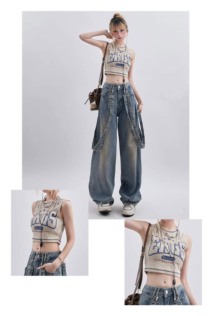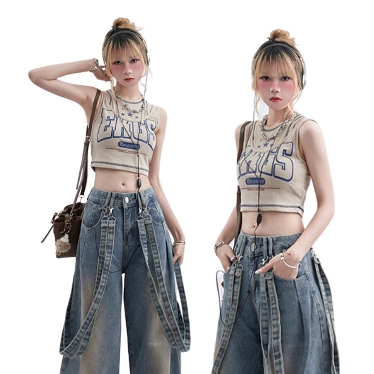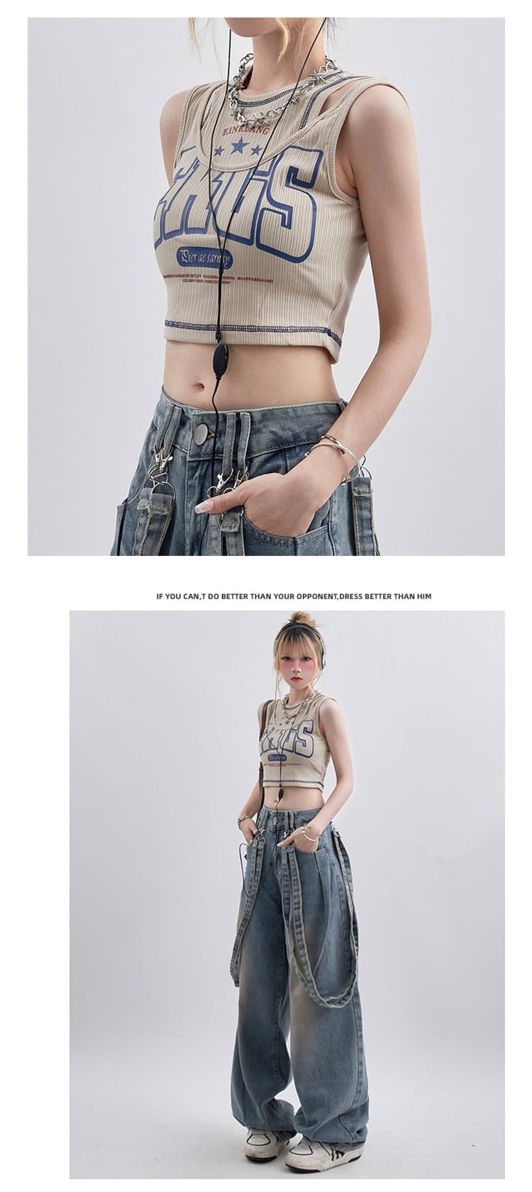 タンクトップレディースTシャツノースリーブUネックロゴプリント