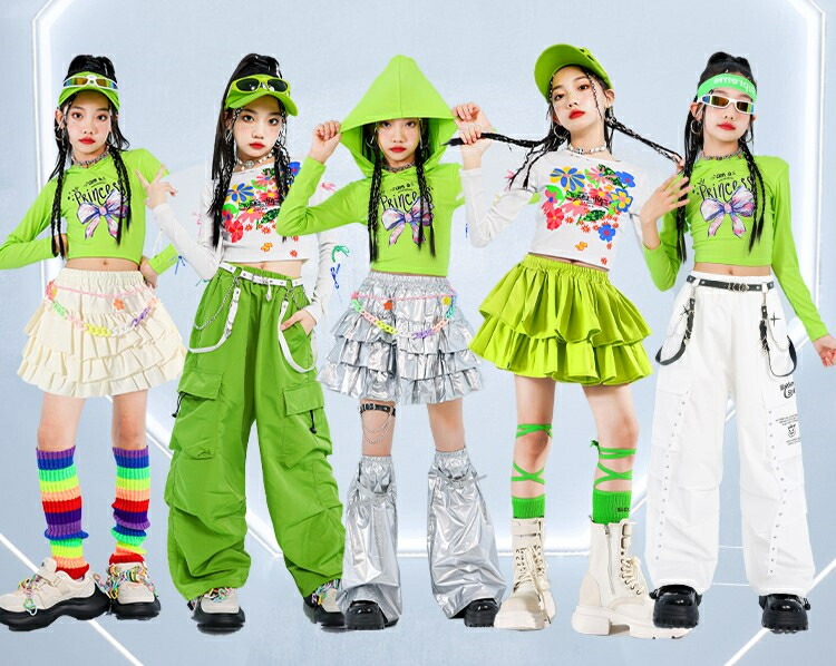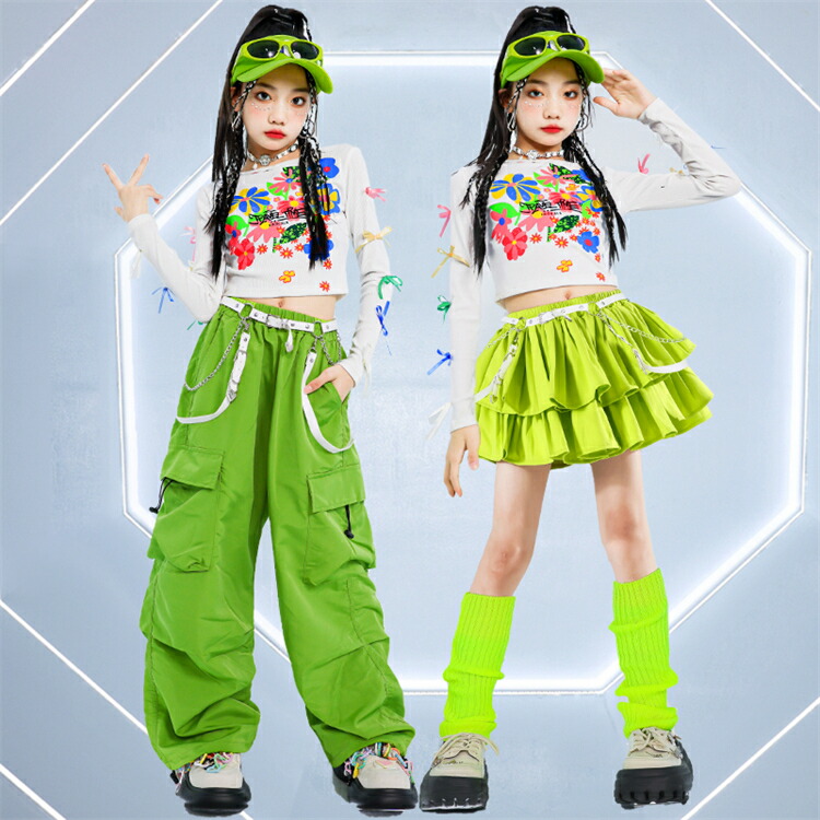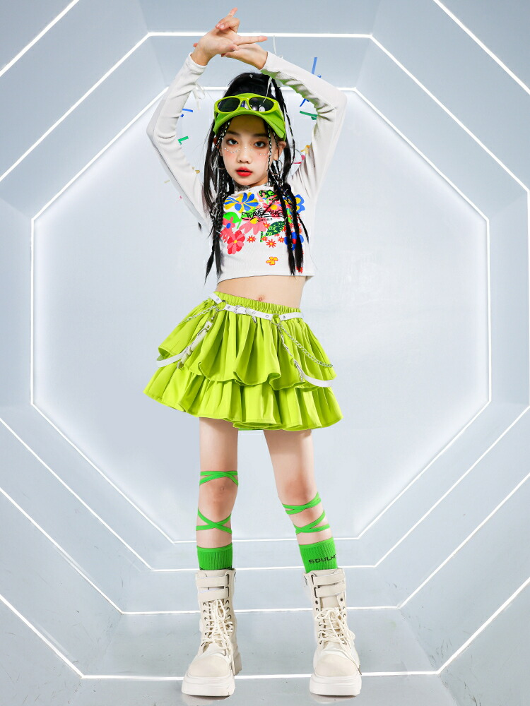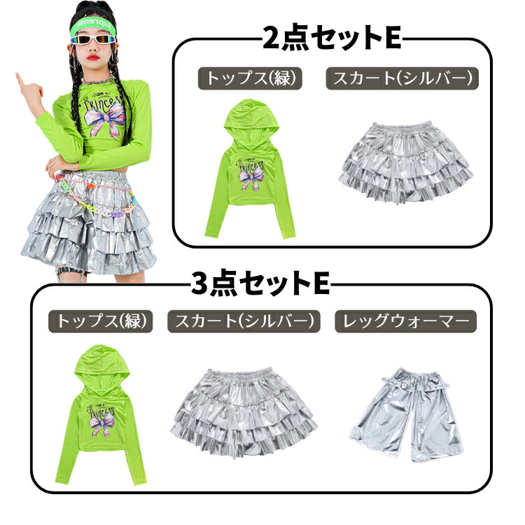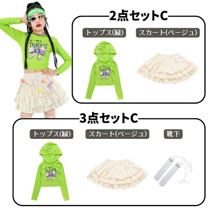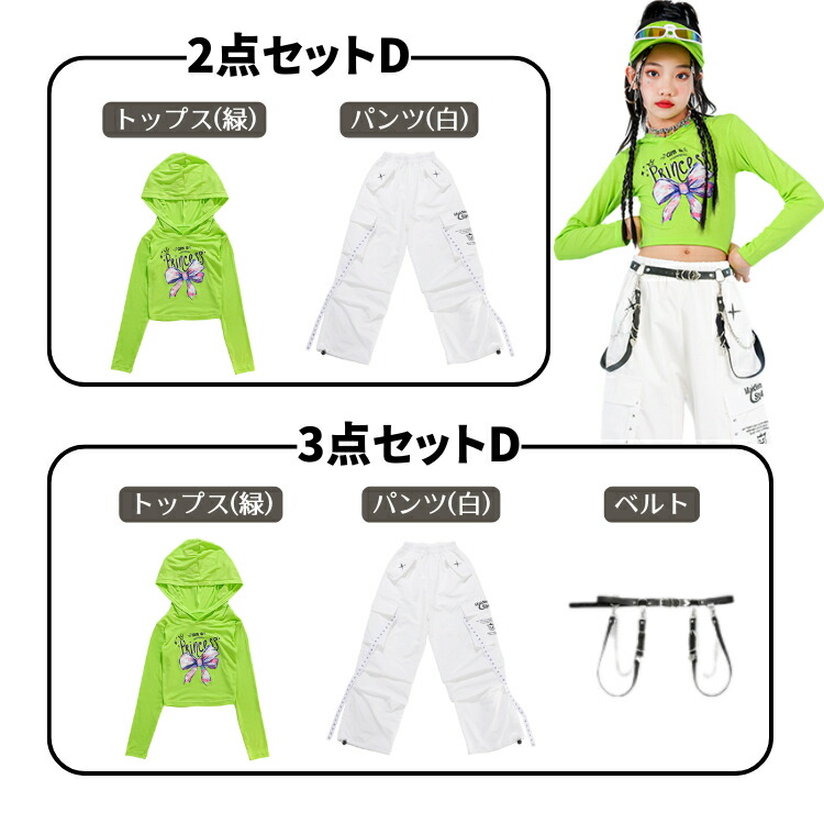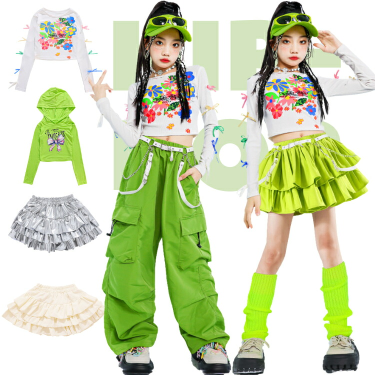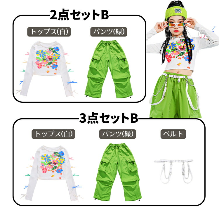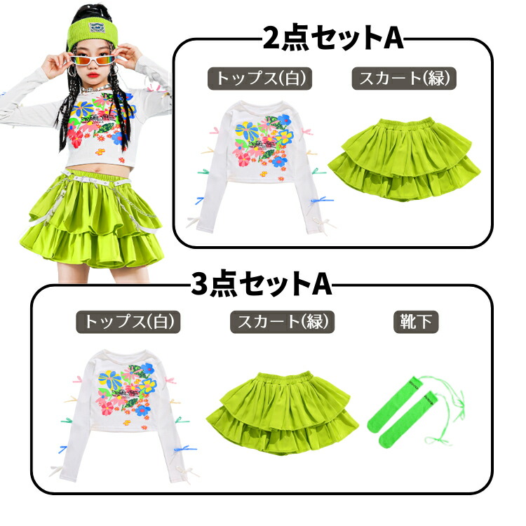ヒップホップ 白 ホワイト グリーン キッズ スーツ カジュアルセットアップ カジュアルスカートセット 早い者勝ち 110cm 120cm 130cm 140cm 150cm 160cm 170cm 2点セットA 3点セットA 2点セットB 3点セットB トップス(白) スカート(緑) スカート(ベージュ) スカート(シルバー) パンツ(緑) パンツ(白)