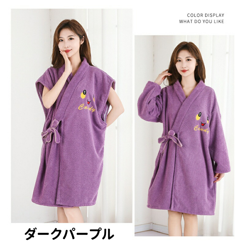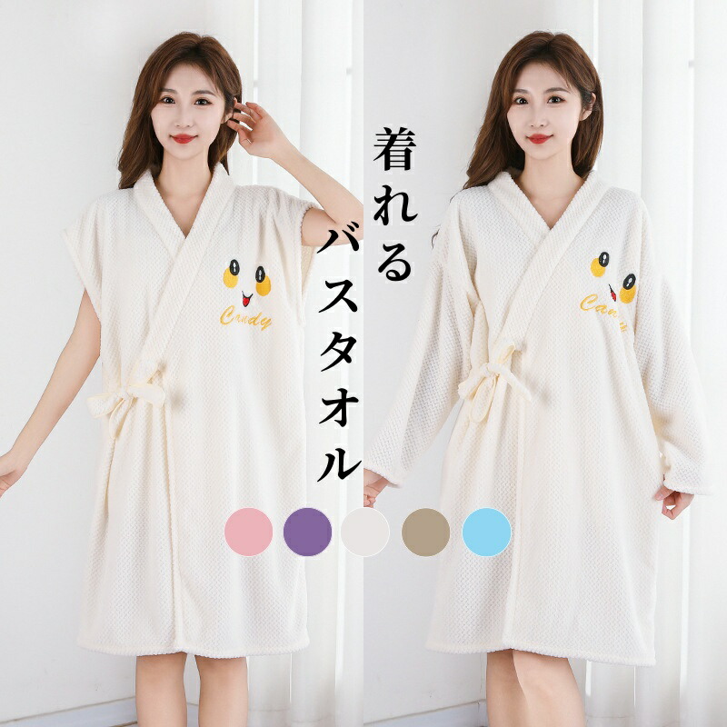 着るバスタオルバスローブ 着るタオル インナー 下着 ナイトウエア 大人気! ホワイト ピンク ダークパープル カーキ ブルー 長袖 半袖