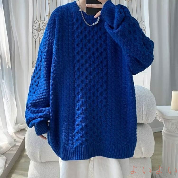 メンズセーター ニット 丸首 セーター トップス ニット セーター 早い者勝ち ロイヤルブルー ブラック アイボリー M L XL 2XL
