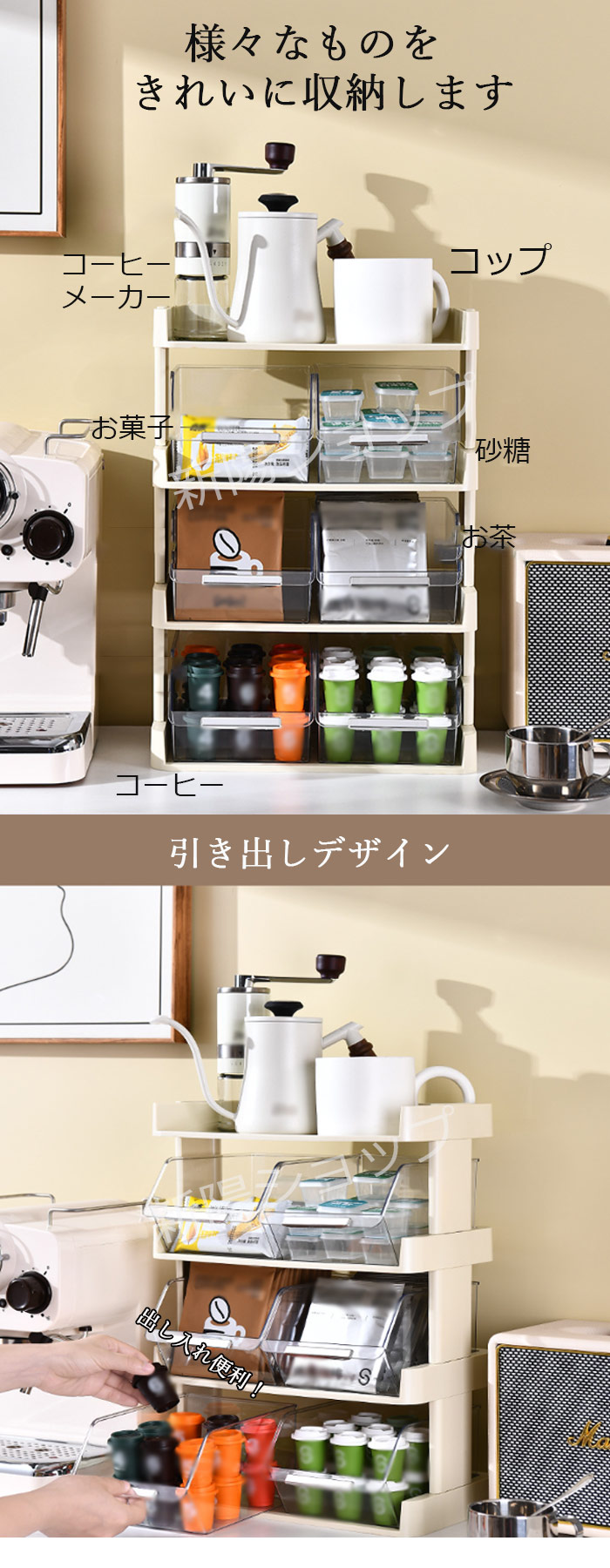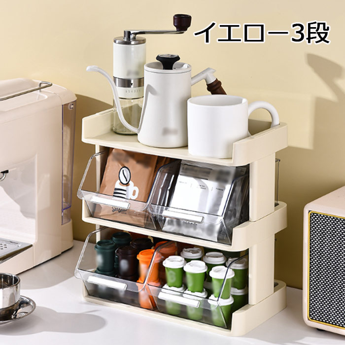 収納ラック 卓上ラック おしゃれ 引き キッチン整理用品 整理ボックス 続々入荷中 ホワイト グリーン イエロー 2段 3段 4段