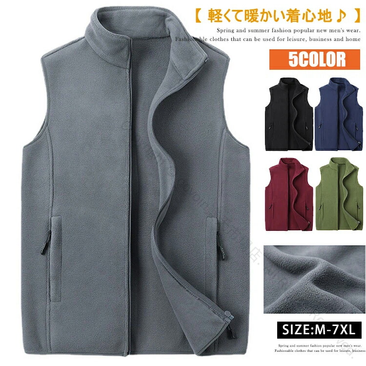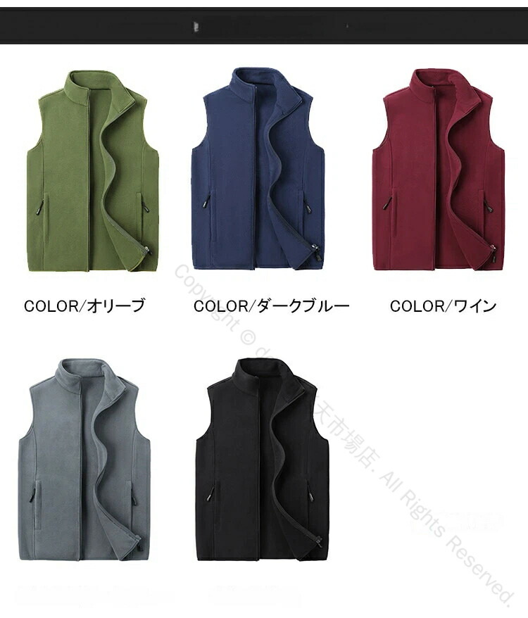 フリース ベスト 起毛 暖かい スタン トップス ベスト ジレ 早い者勝ち M L XL 2XL 3XL 4XL 5XL 6XL 7XL オリーブ 黒 ダークブルー ワイン ダークグレー