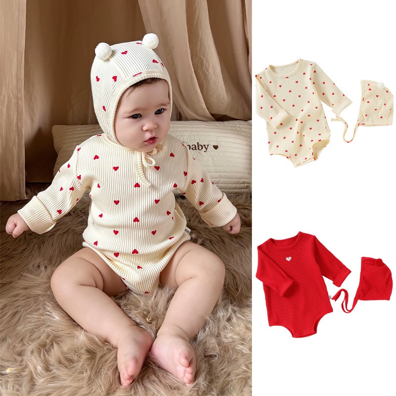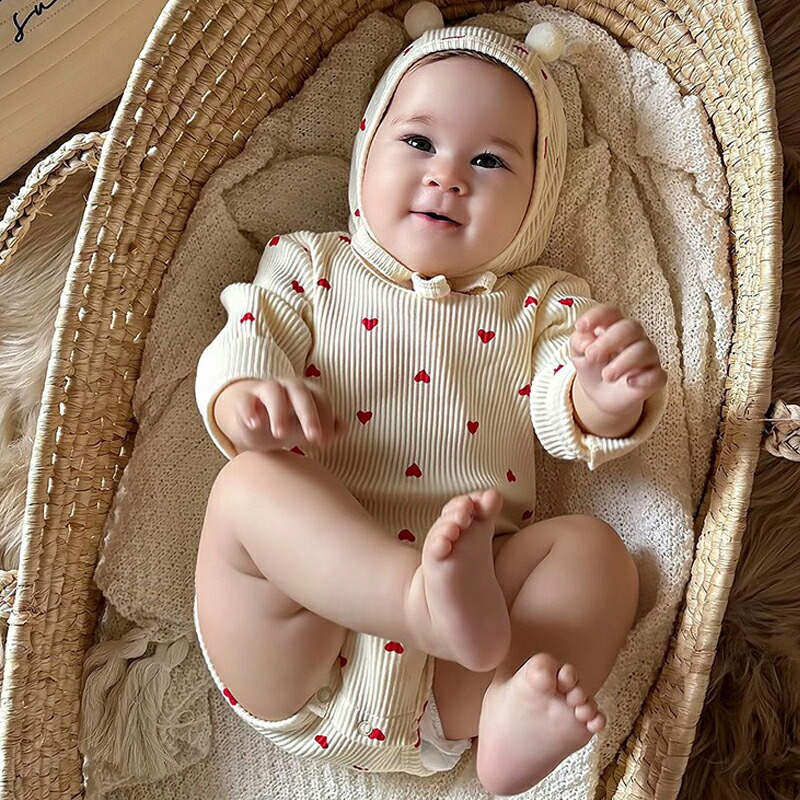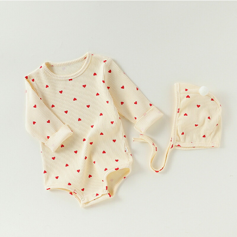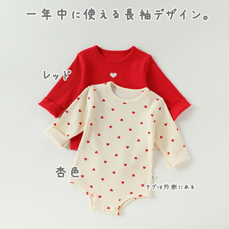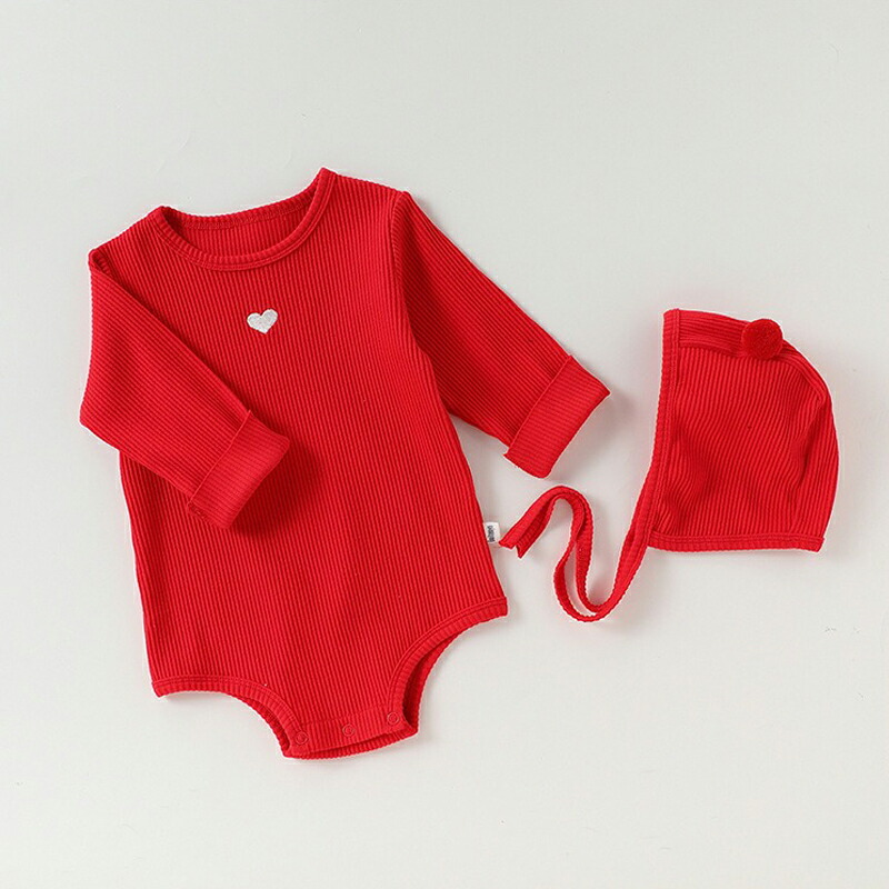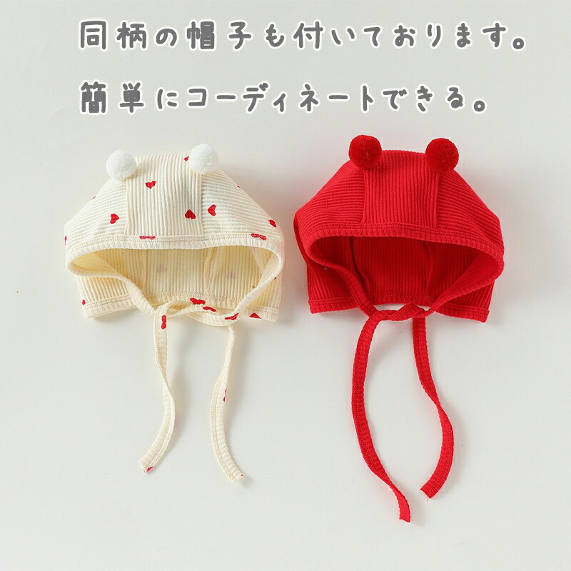 帽子付き 長袖ロンパース レッド ベビ キッズ ベビー マタニティ 人気 杏色 レッド 66cm 73cm 80cm 90cm