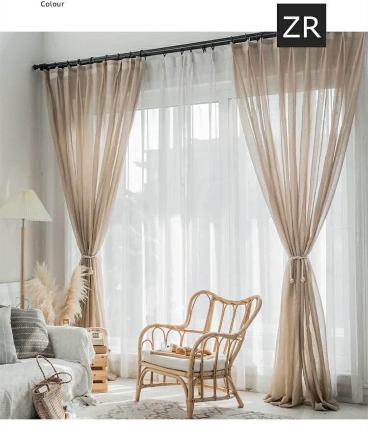 カーテン 幅80~幅350cm 丈65~255cm 半遮光 レースカーテン リネン 1枚 和風 北欧風 無地 腰窓 インテリア 丈直し フック 風通し ナチュラル 間仕切りカーテン オーダーカーテン