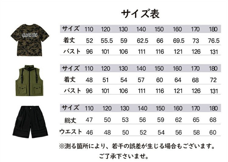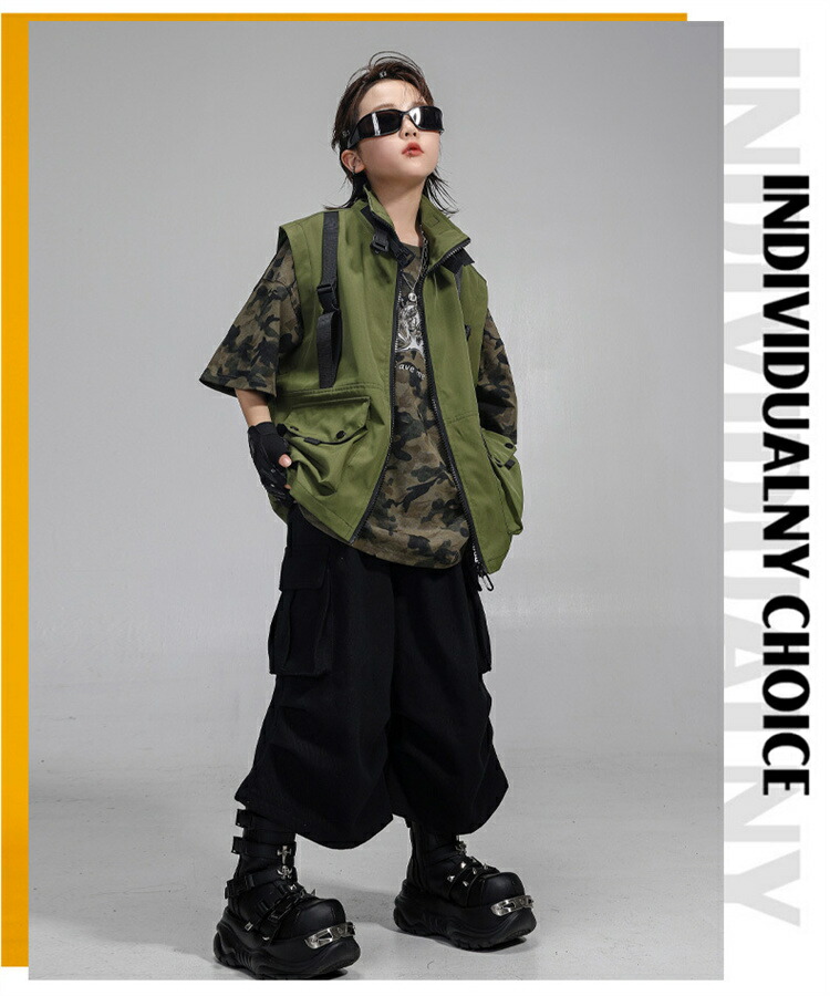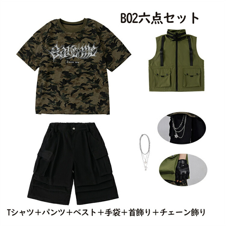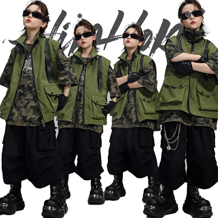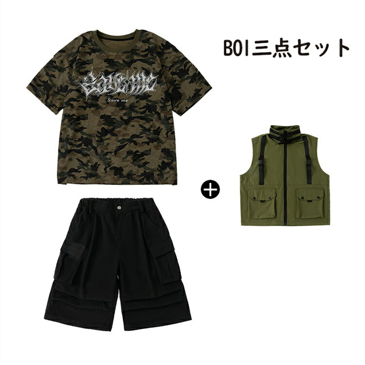 カーキグリーン ダンス キッズ セット キッズ ベビー マタニティ 早い者勝ち A01二点セット A02三点セット B01三点セット B02六点セット 迷彩Tシャツのみ 迷彩ベストのみ 黒ハーフパンツのみ 110 120 130 140 150 160 170 180
