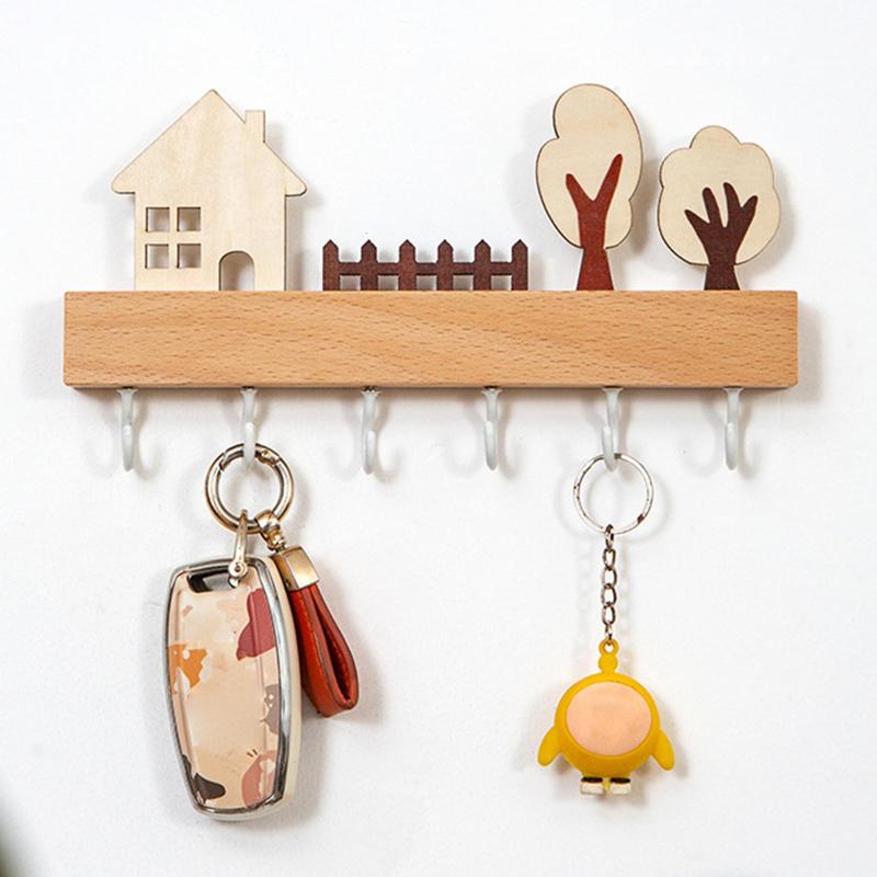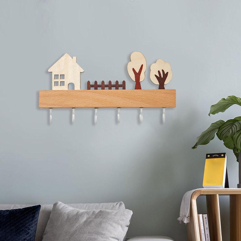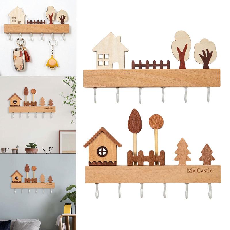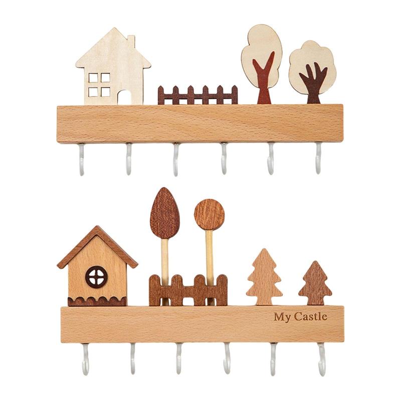 木製キーホルダー壁マウントされた素朴な 日用品雑貨 文房具 手芸 豊富 白 ベージュ
