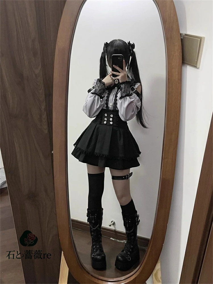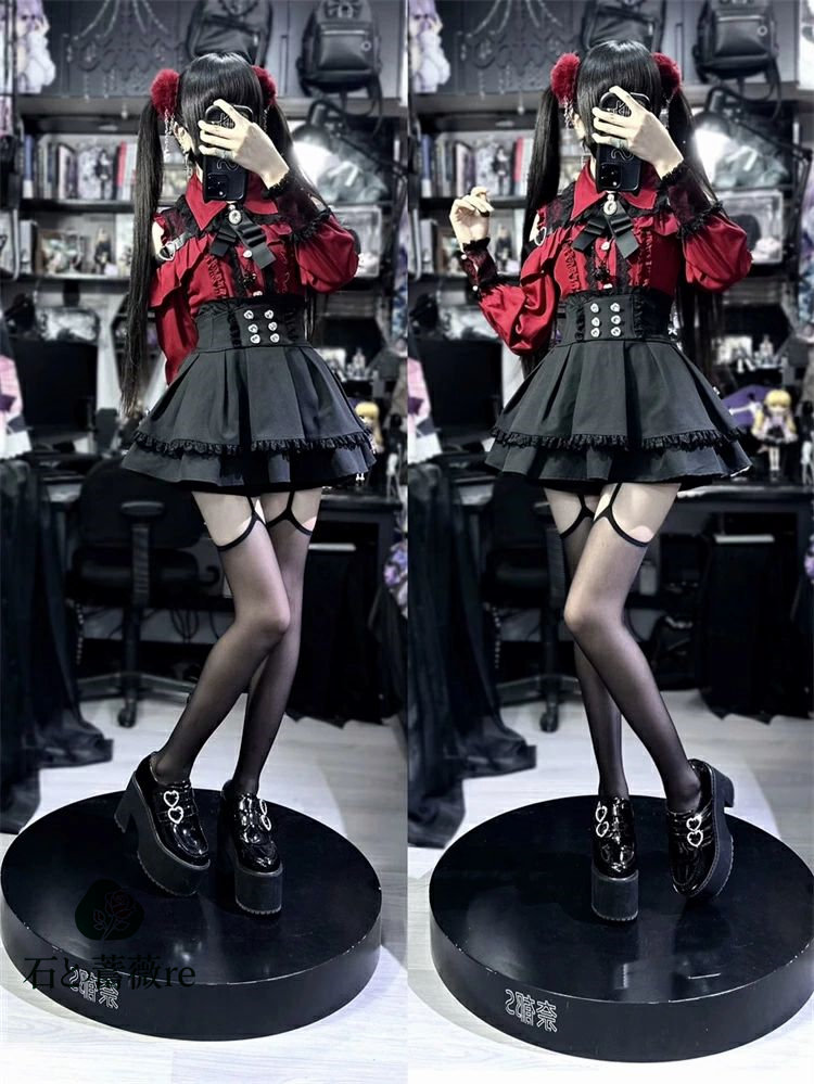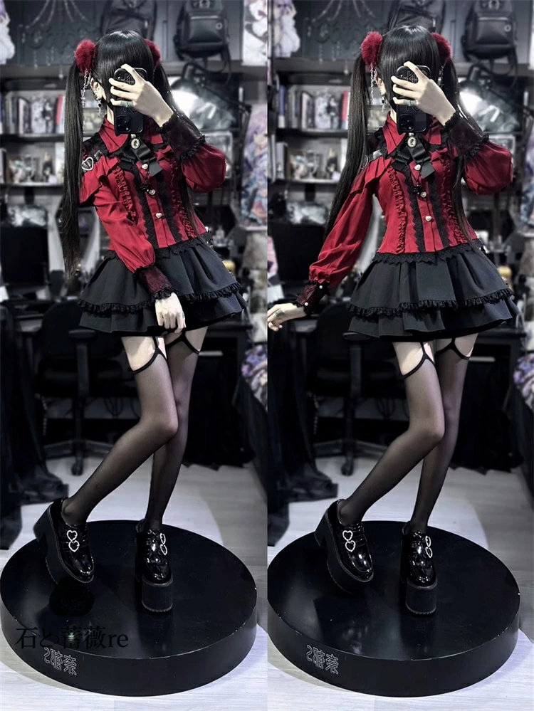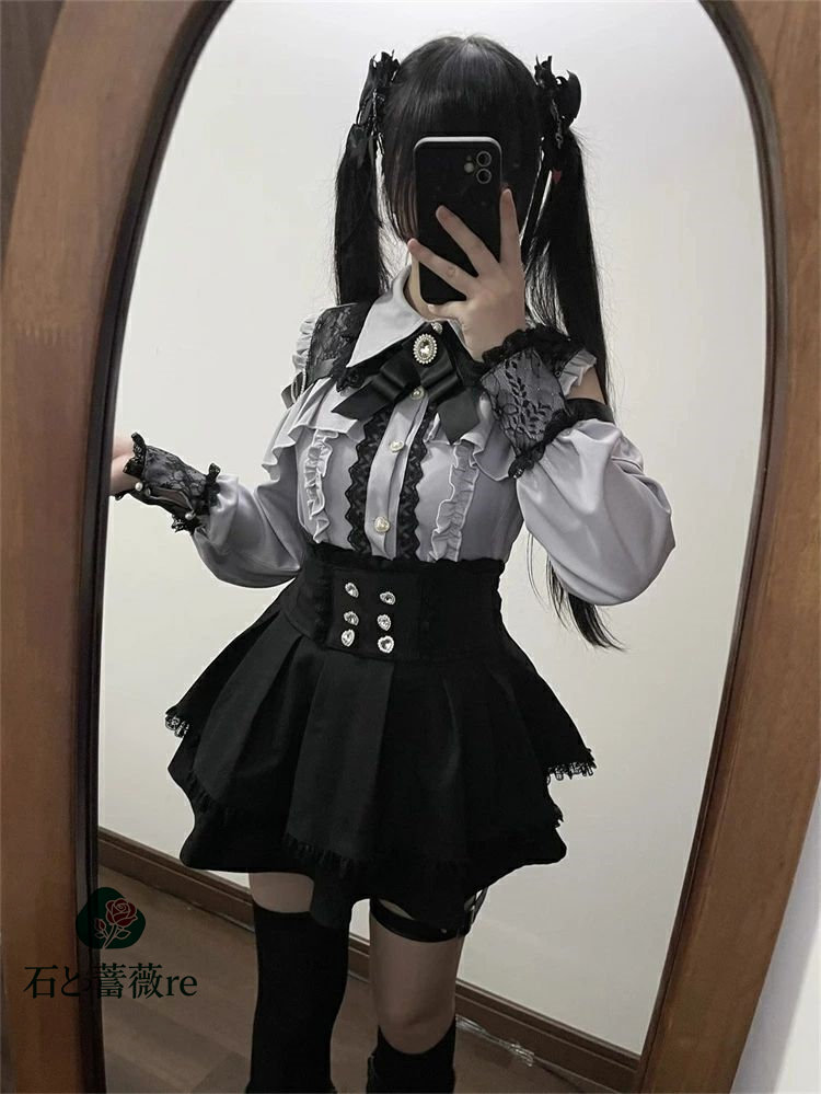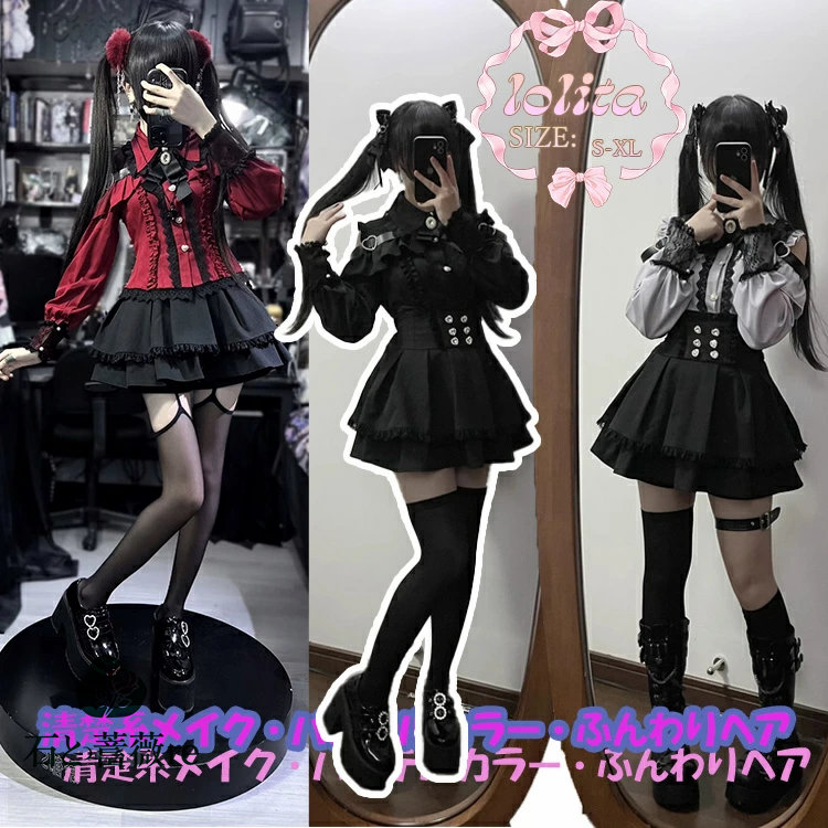 ボウタイ トップス 地雷系 リボン レ コスプレ 変装 仮装 コスチューム一式 新登場! レッドシャツ ブラックシャツ グレーシャツ スカート レッドシャツ+スカート ブラックシャツ+スカート グレーシャツ+スカート S M L XL