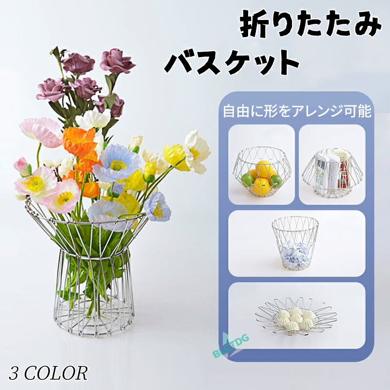 折りたたみ式ワイヤーバスケット 収納か ブラック シルバー ゴールド S M L