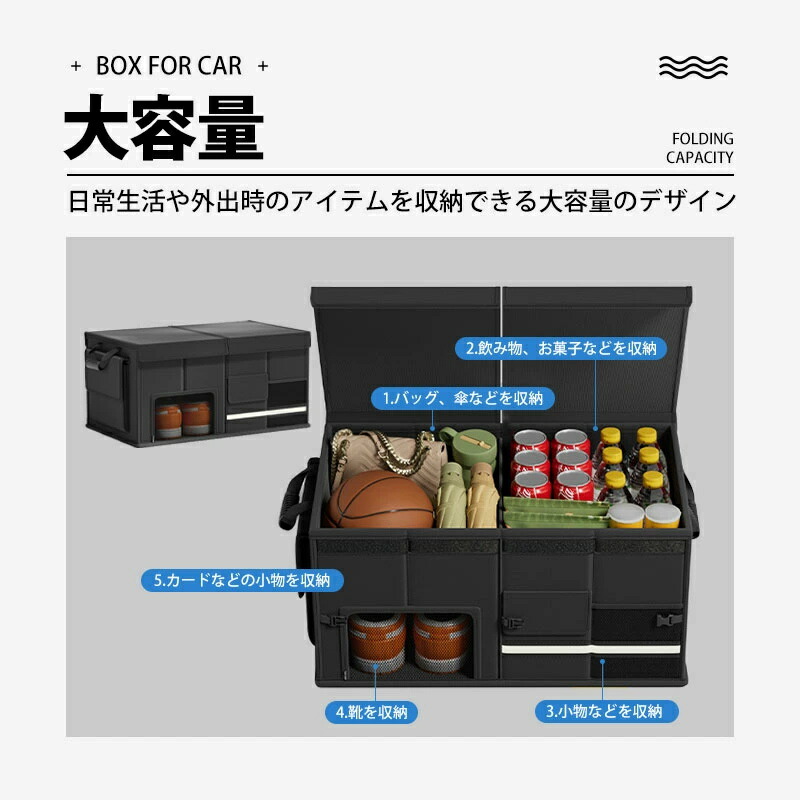 車用収納ボックス トランクボックス 収納ケース 折りたたみ ふた付き 大容量 仕切り 30L 60L 撥水 防水 耐摩耗 お手入れ簡単 車載バッグ ラゲッジ収納 トランク収納 小物整理 工具収納 洗車用品 非常用品 シューズ収納 靴収納 食品収納 アウトドア キャンプ ピクニック 取っ手付き 面ファスナー すべり止め 反射 ステッカー 反射材 視認性 吊り手 省スペース コンパクト 収納 折り畳み 片付け 整理 整頓 軽自動車 セダン ワゴン ミニバン SUV トラック ハッチバック 車中泊 ドライブ 旅行 帰省 レジャー カー用品 車用品 便利グッズ 収納グッズ ラゲッジ ルーフなし 後部収納 荷室 置き型 仕切り板 取り外し 分割 多機能 使い勝手 使いやすい スタイリッシュ ブラック 黒 男前インテリア 車内インテリア シンプル かっこいい おしゃれ ギア ボックス ケース 防汚 防滴 防塵 丈夫 長持ち 自立型 折りたたみ収納 フラット収納 スペース活用 荷崩れ防止 目隠しカバー ふた付きボックス 収納力 収まりが良い 安定感 走行中ズレ防止 滑り止めテープ 車体固定 プレゼント ギフト 贈り物 父の日 母の日 敬老の日 誕生日 クリスマス 新生活 一人暮らし ファミリー 人気 おすすめ 2025年