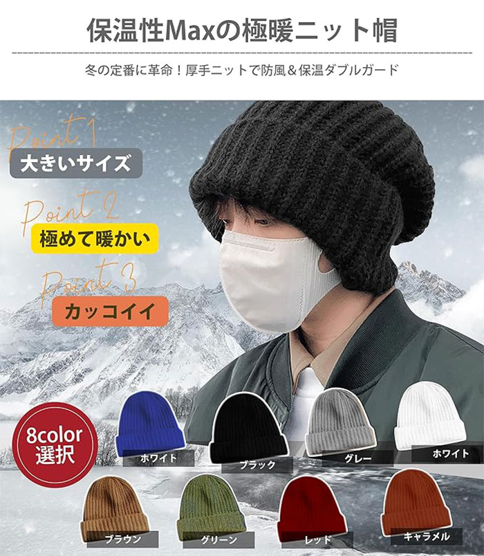 ニット帽 メンズ 大きいサイズ 帽子 帽子 メンズ帽子 ニット帽 通販 ホワイト レッド グレー ブラック ブラウン カルメラ グリーン ブルー