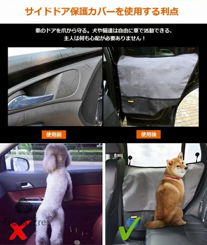 車のドアを爪から守る。犬や猫達は自由に車で活動できる、主人は何も心配が必要ありません