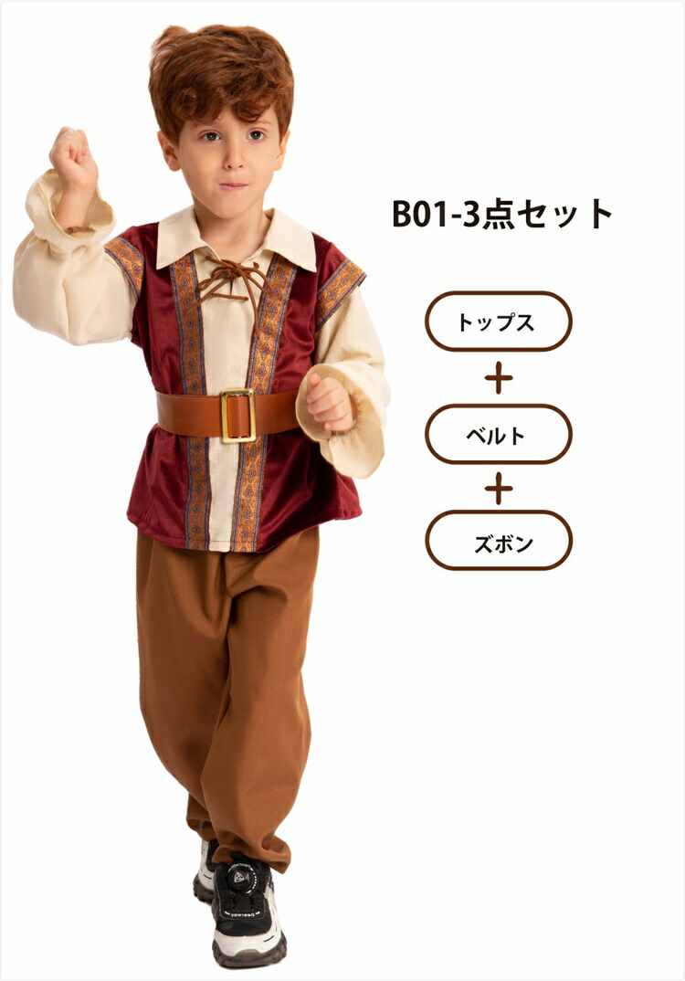 ハロウィン 衣装 子供 コスプレ 中世 ホビー 続々登場 ワンピース B01-3点セット C01-6点セット S M L XL