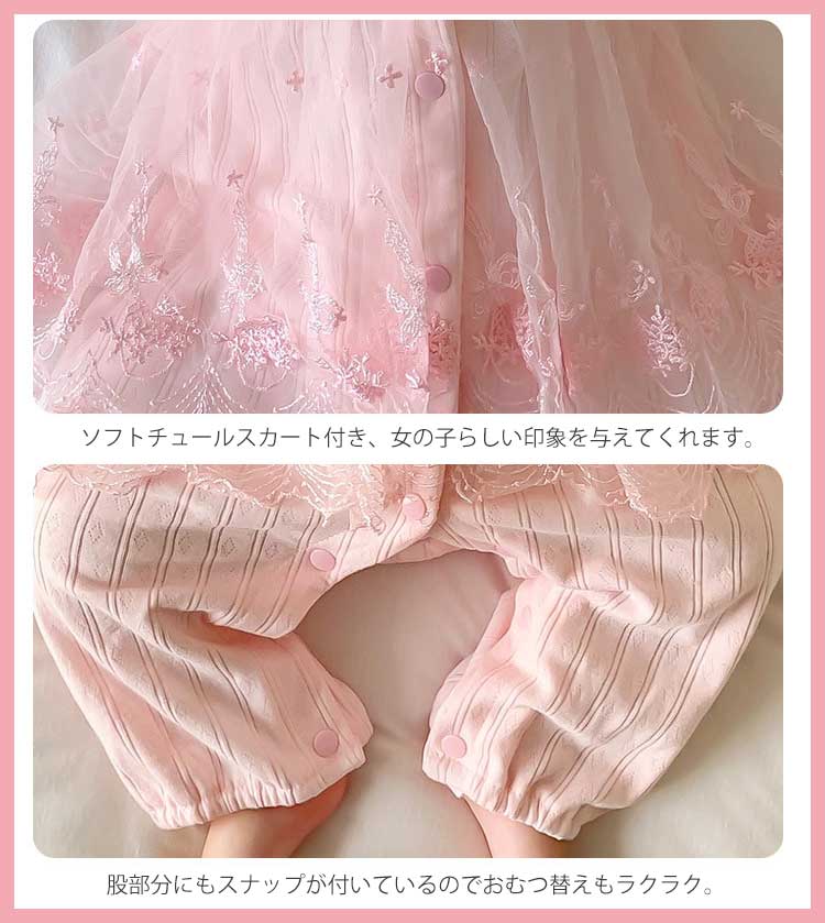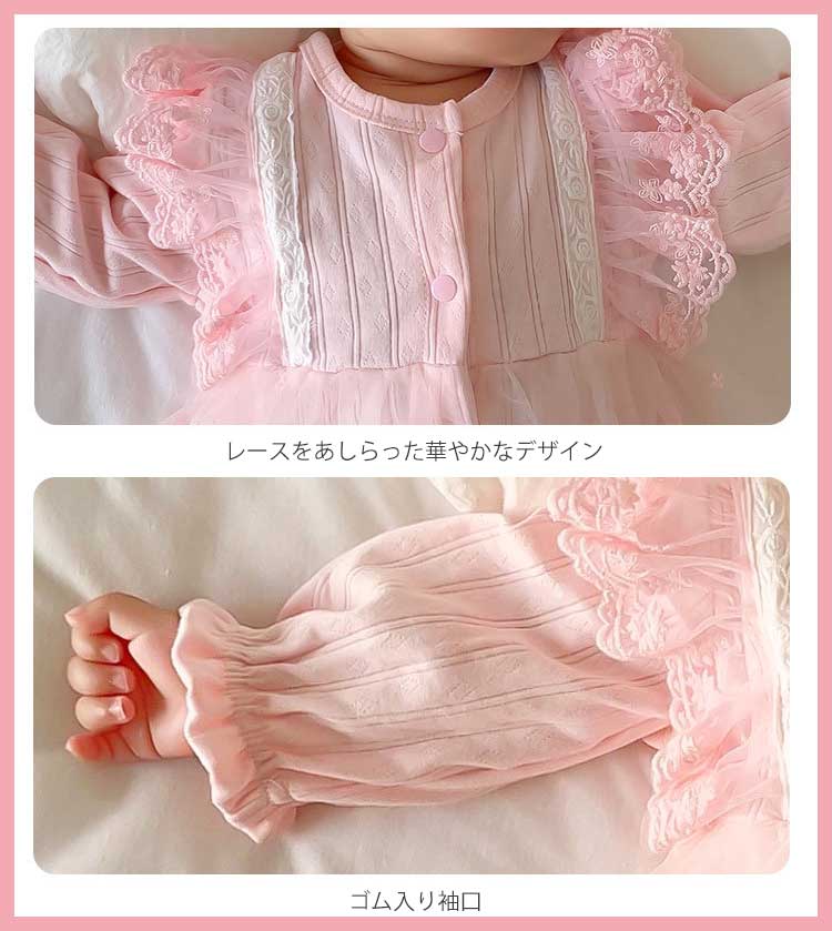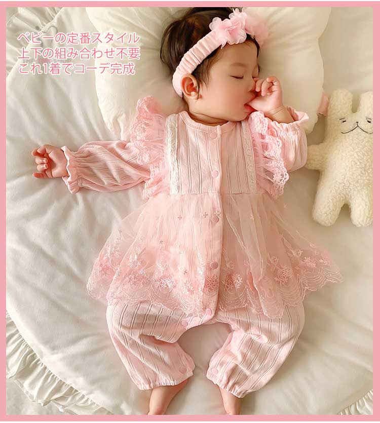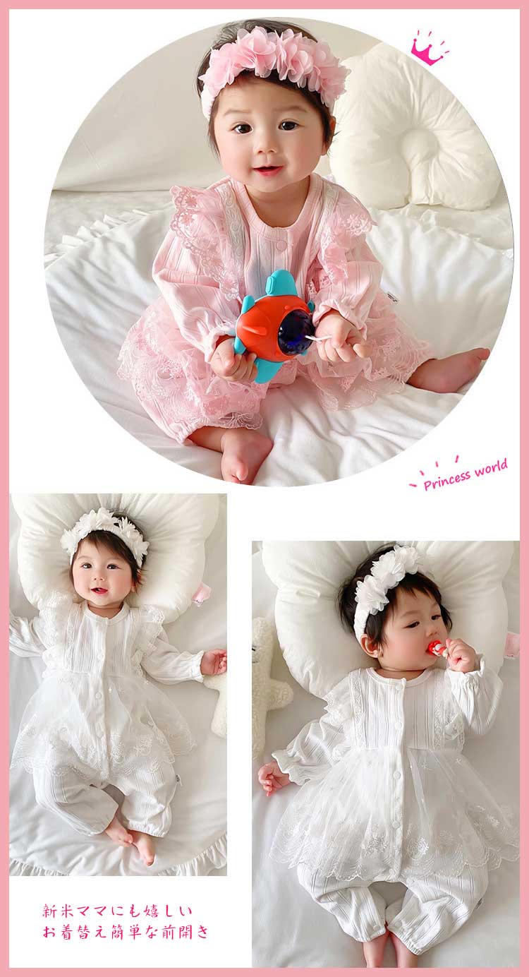 ヘアバンド追加 ベビー服 フォーマル 女の子 プリンセス カバーオール ロンパース かわいい レース 赤ちゃん 長袖 新生児 ワンピース 赤ちゃんドレス 100日 セレモニードレス