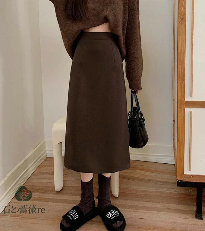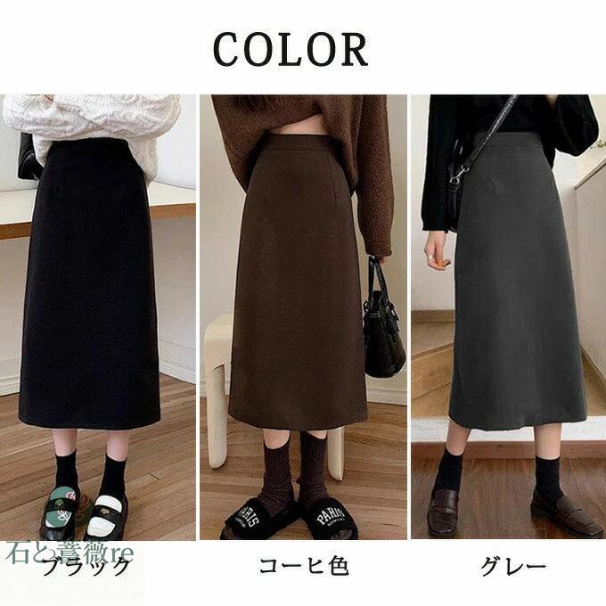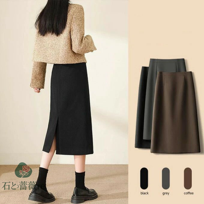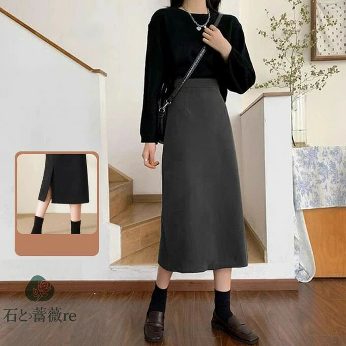 Aラインスカート スリット ロングスカ ボトムス スカート 特集 ブラック グレー コーヒ色 S M L XL 2XL