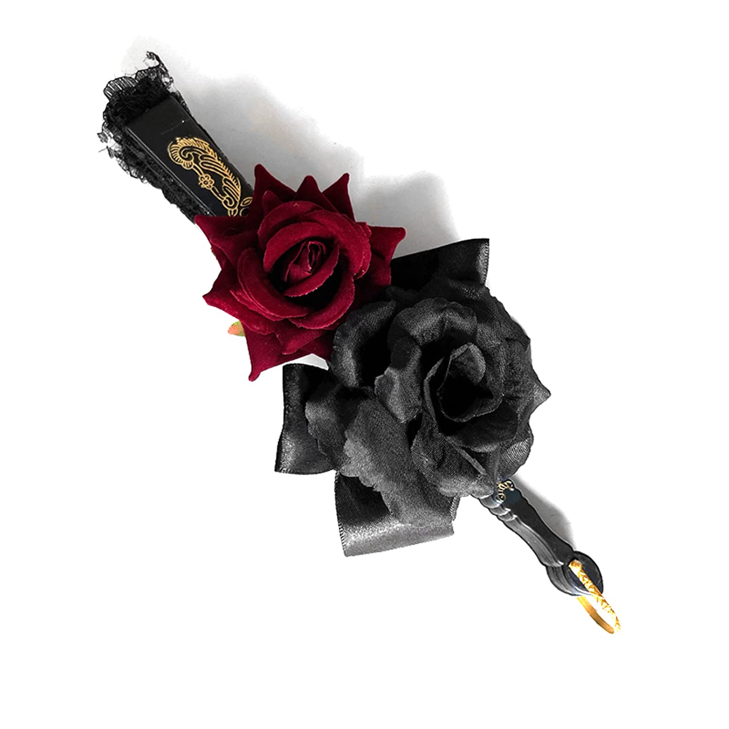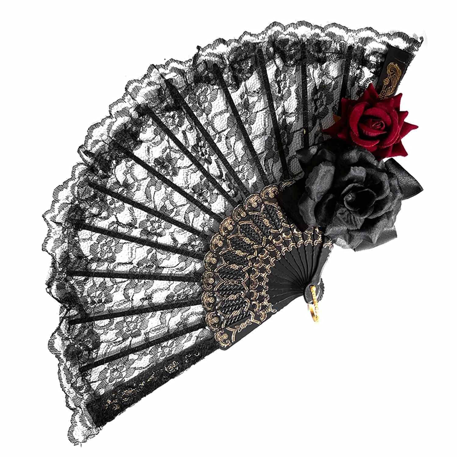 ヴィンテージ ロリータ ビクトリア朝 ゴシック レディース レース ハンドファン ブラック レッド パーティー ハロウィン用, ブラック, ローズ