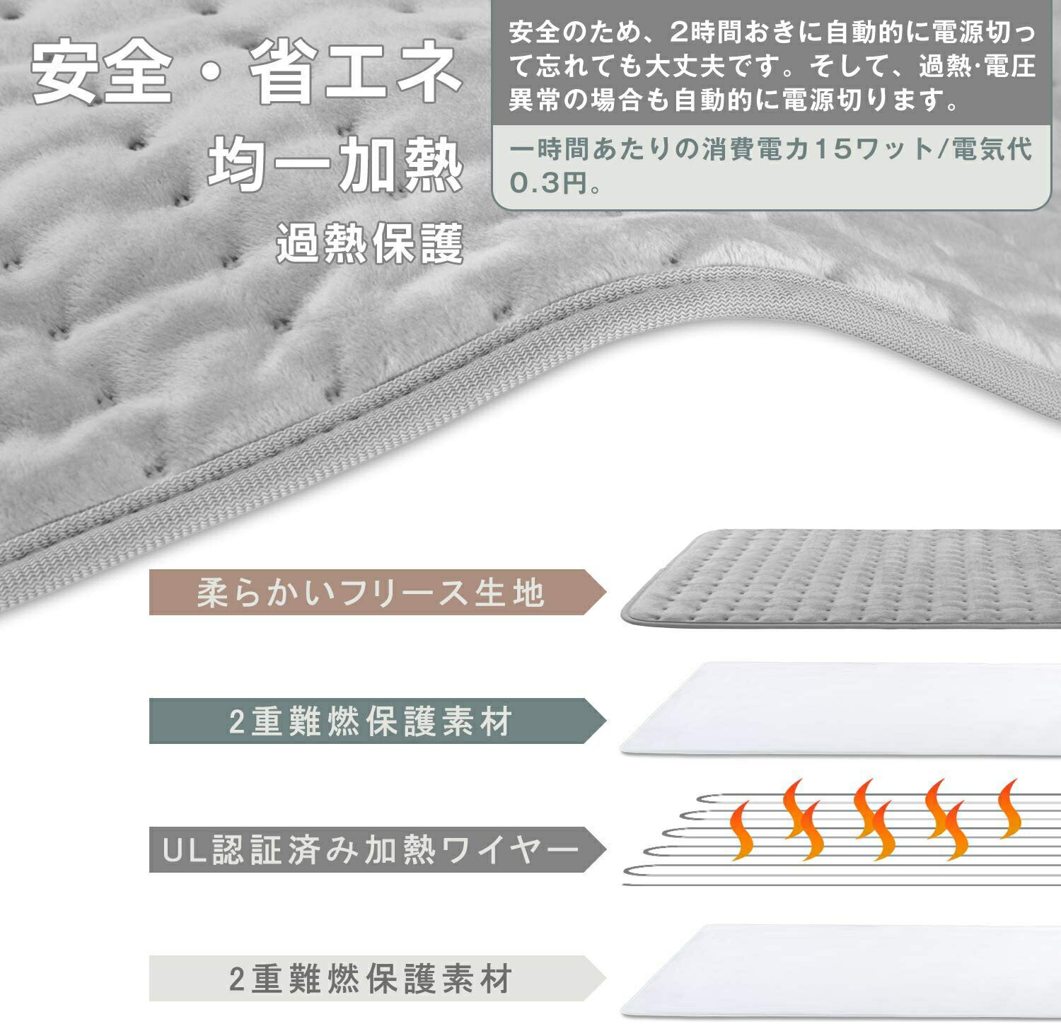 【タッチ快適で柔らかく&安心安全】この電気ヒーターは、様々な身体の部位を暖めることができる暖房器具です。表面は柔らかくフリース生地なので、電源をオンにするといつももこもこを感じられます。快適に家族と寒い真冬を過ごせます。雑菌の繁殖を抑え、臭い成分の発生も防ぎます。加熱パッドはPSE認証を取得しております。生活レベルの防水を実現し、電気漏れ防止します。難燃性素材と過熱保護を内蔵して、燃焼事故の発生を防止し、安心して24時間以上続けて使用できます。