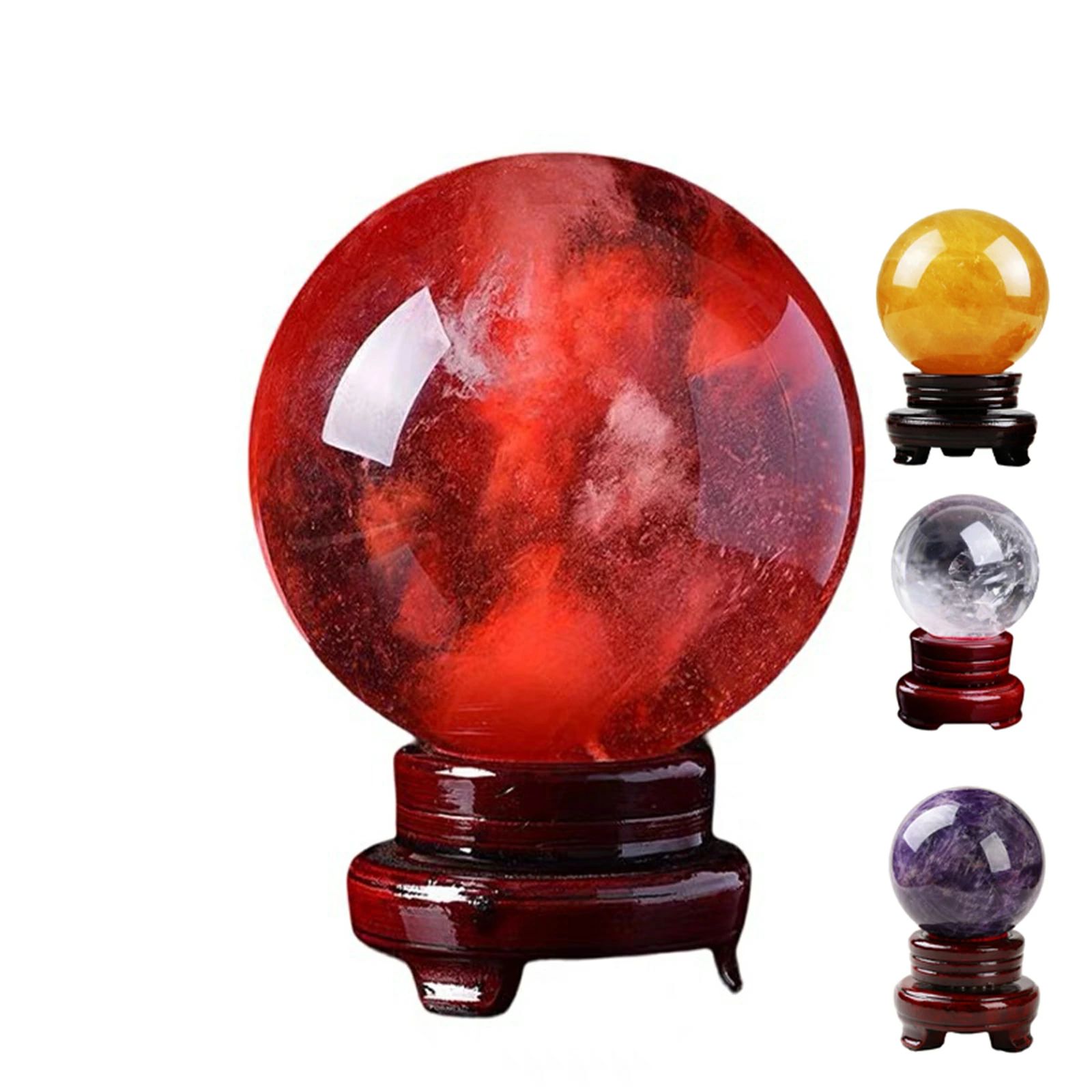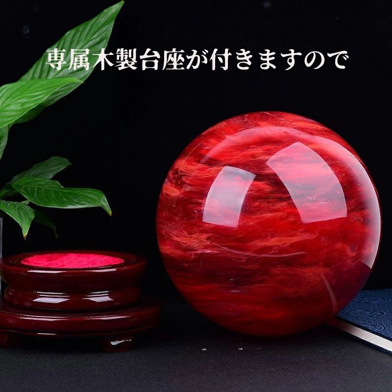 赤水晶 パワーストーン 水晶玉 風水 縁起物 水晶ボール クリスタルボール 天然石英赤のスメルティングストーン 癒しオーラ 木製台座 ブラケット 地鎮祭の水晶玉仕事運 金運 人気 恋愛運UP 瞑想 鎮宅 厄除け 縁起物 風水グッズ