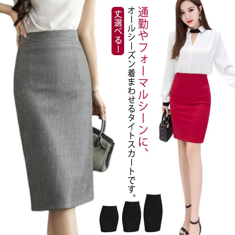 選べる丈 タイトスカート ひざ丈 ミニ ボトムス スカート 通販 長黒 長赤 長灰 中黒 中赤 中灰 短黒 短赤 短灰 S M L XL 2XL