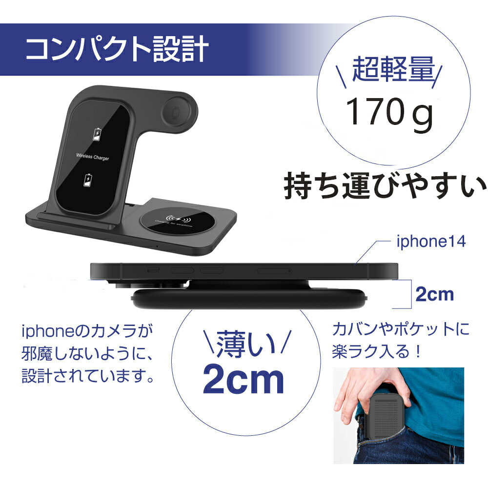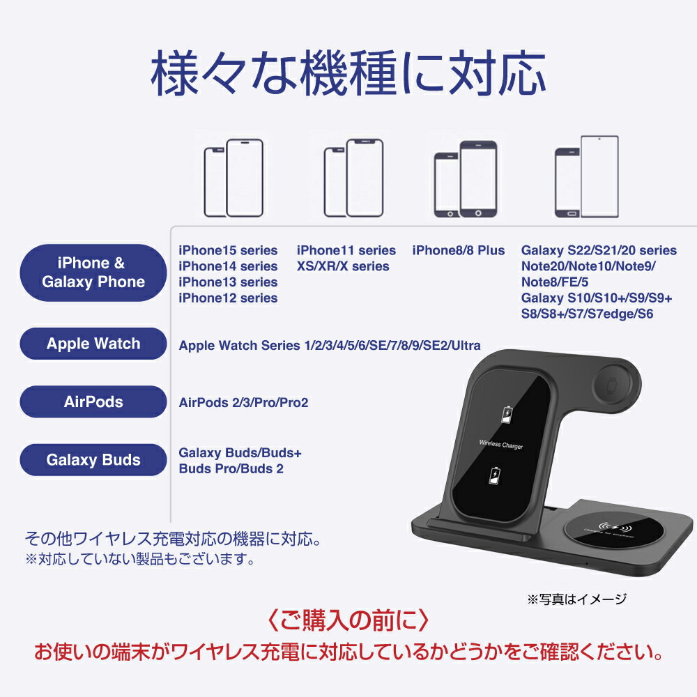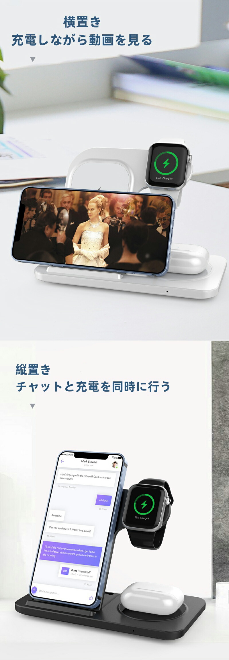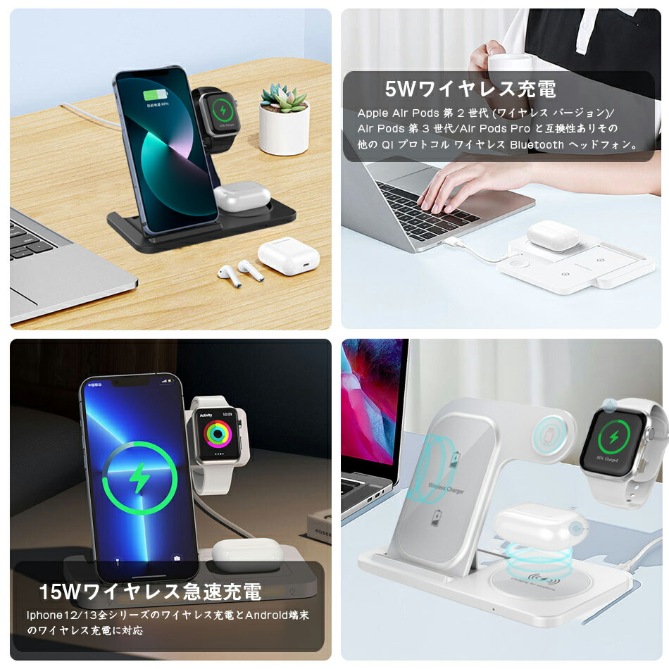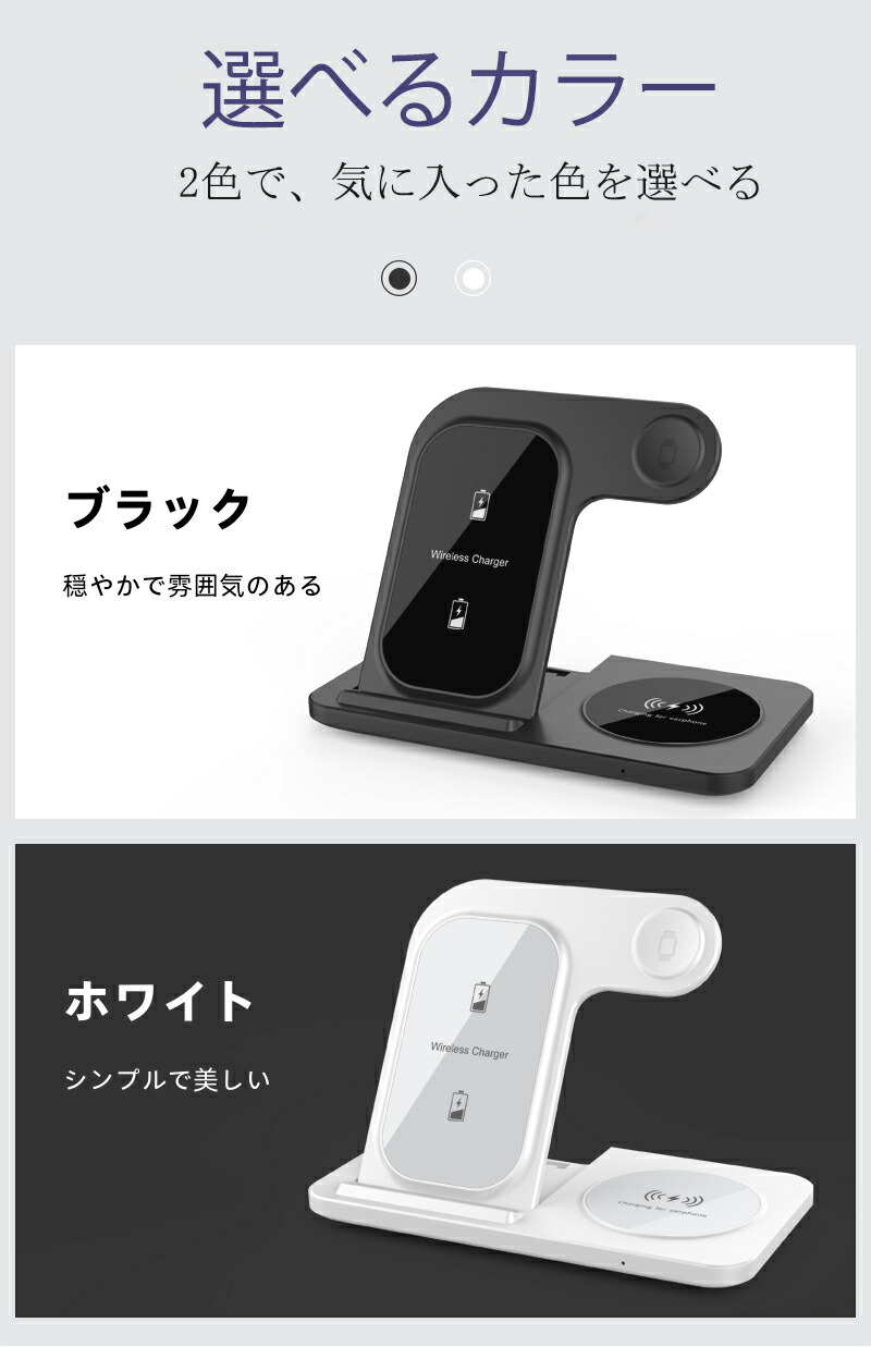 ワイヤレス充電器 3in1 15W 最 ブラック ホワイト