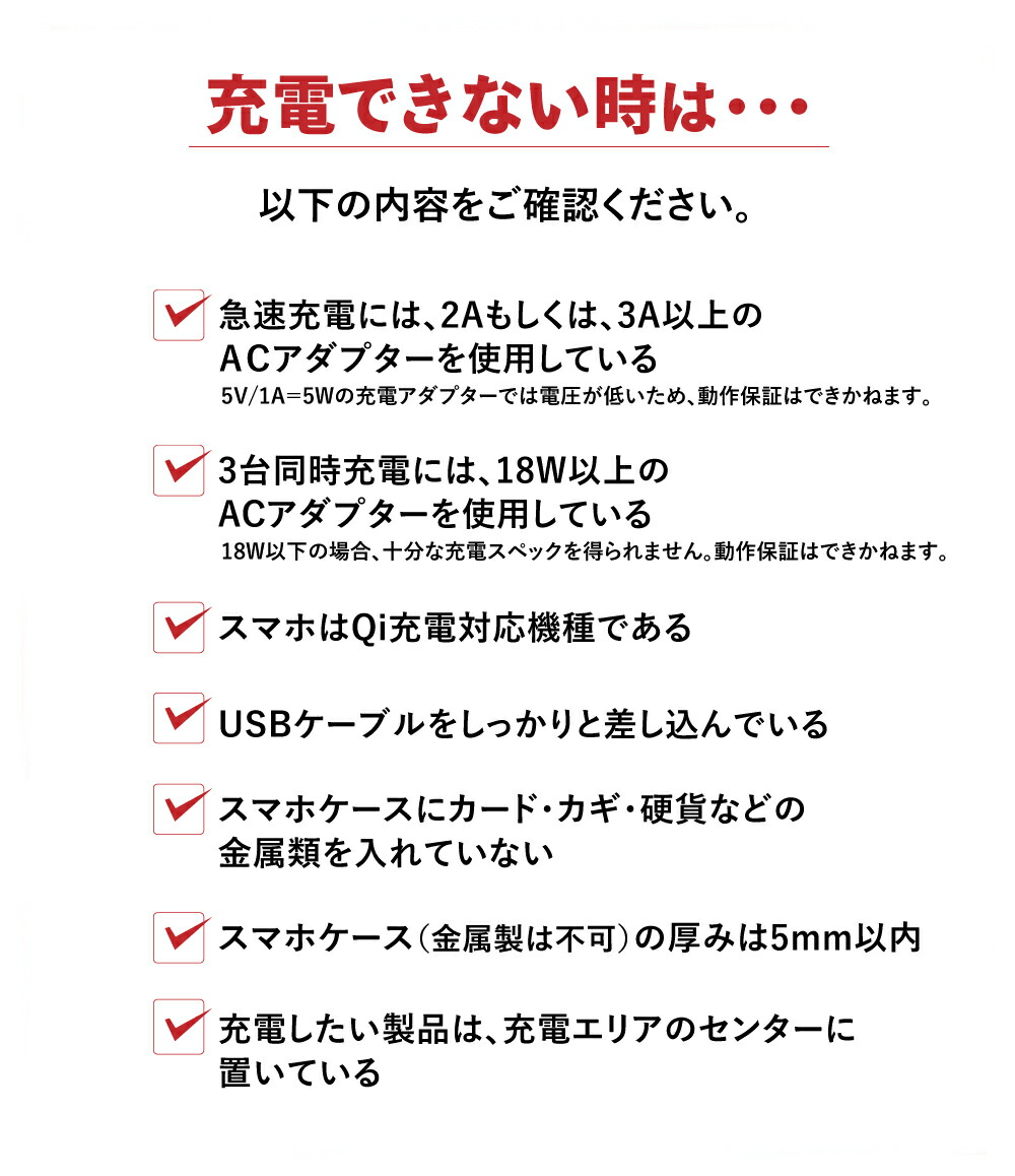 ・お使いの機種がワイヤレス充電(Qi)に対応していない場合は、本商品単体ではご利用できません。