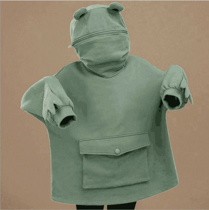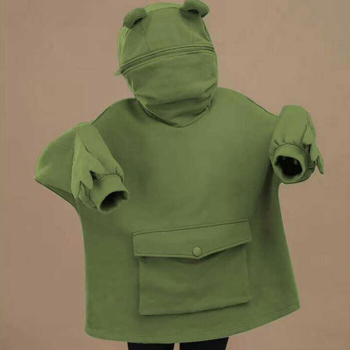 パーカー レディース メンズ かえる柄 カップル かわいい ロング トレーナー 裏起毛 韓国ファッション 萌え 動物 蛙 トップス 森ガール ゆったり カジュアル フード付き プルオーバー スウェット