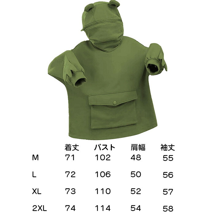 パーカー レディース メンズ かえる柄 レディースファッション 続々入荷中 A B C D E F G H I S M L XL 2XL