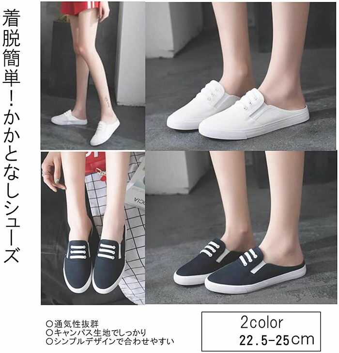 かかとなし スニーカー レディース ス 靴 人気 ブラック ホワイト 35(内寸:22.5cm) 36(内寸:23cm) 37(内寸:23.5cm) 38(内寸:24cm) 39(内寸:24.5cm) 40(内寸:25cm)