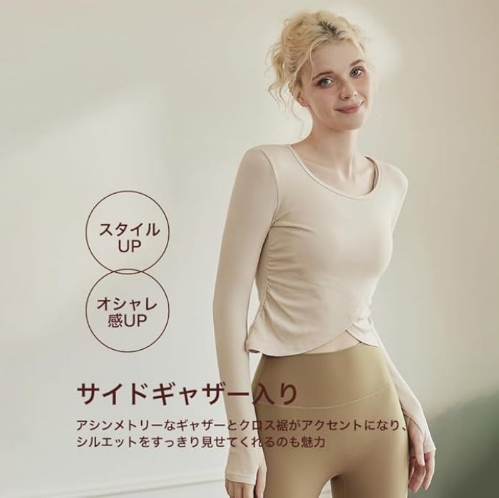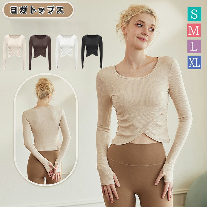 ヨガウェア トップス レディース 長袖 スポーツ アウトドア 豊富 ベージュ ブラック コーヒー ホワイト S M L XL