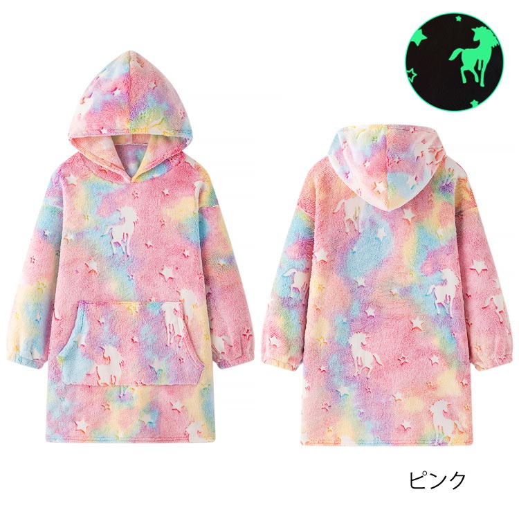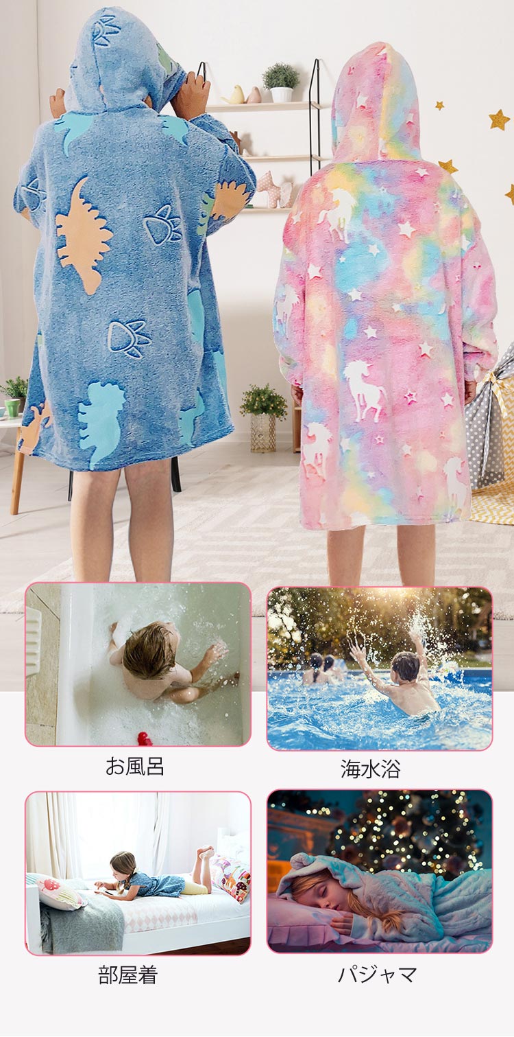 着る毛布 フード付 子供 パジャマ ル インテリア 寝具 収納 通販 ピンク パープル 恐竜柄 星空 S M