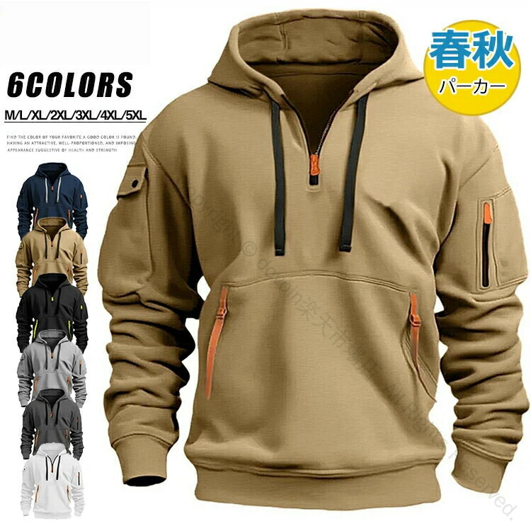 プルオーバーパーカー メンズ 長袖 無 メンズファッション 早い者勝ち M L XL 2XL 3XL 4XL 5XL ネイビー ベージュ 黒 ライトグレー ダークグレー 白